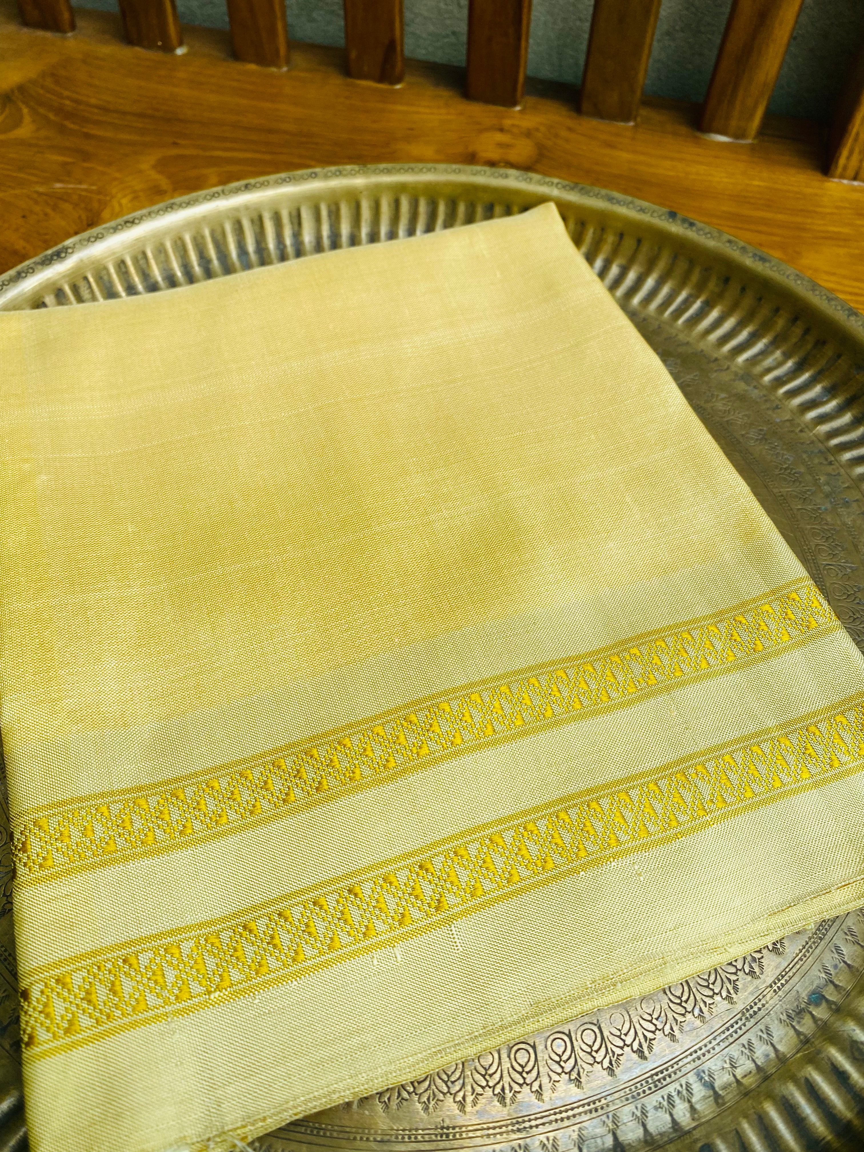 Being 100% pure mulberry silk Ilkal fabrics, woven on pitloom in the quaint villages of Guledgudda, Kamatagi and Shirur. They are woven on the pitlooms that typically weave our Ilkal sarees. These have the "khaddi" detailing in the border (line design). Some even have the checkered design on the body. Others have the Gadi-Dadi border. They have been designed to pair beautifully with any saree with rich Indian jewel tones such as our Ilkal and Khunn sarees in pure mulberry silk. For those with a border, the border is uniform on both sides of the yardage.