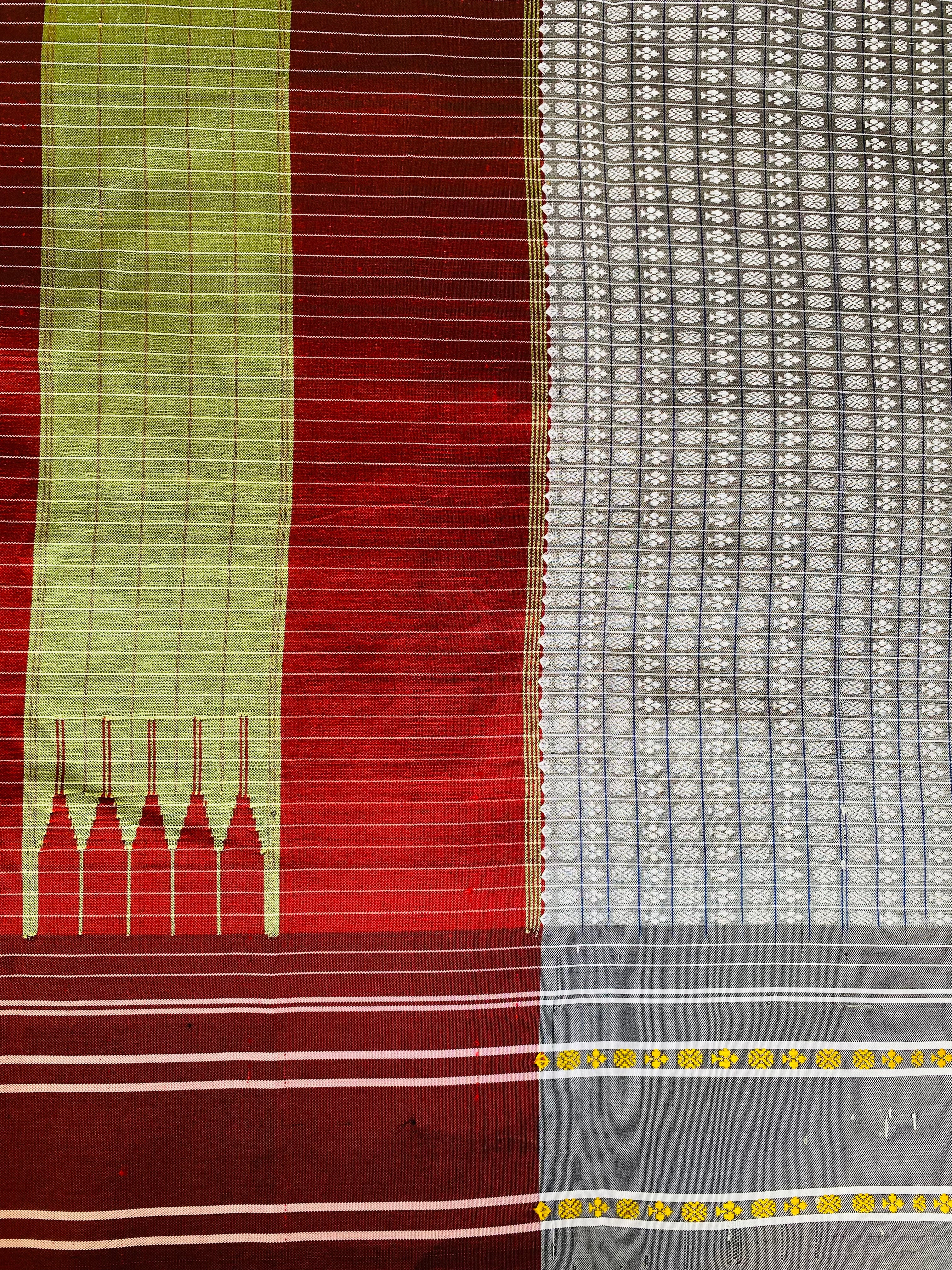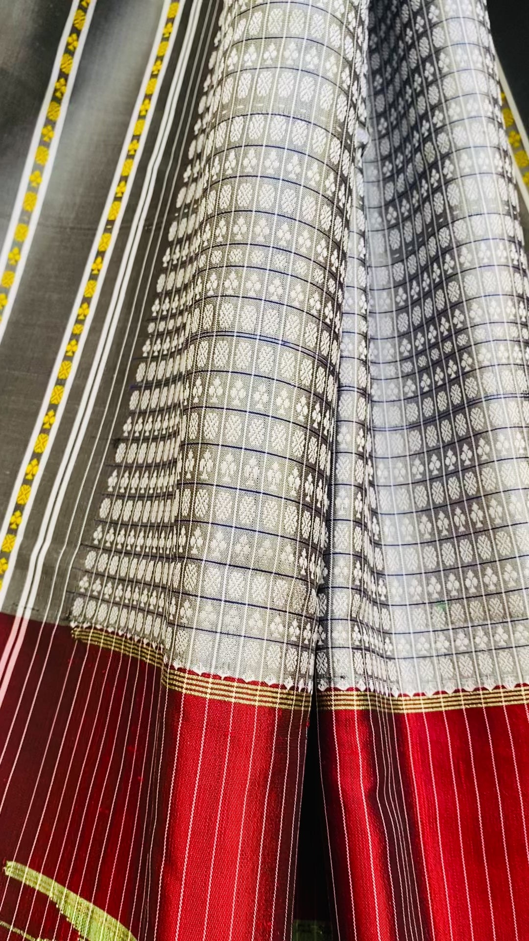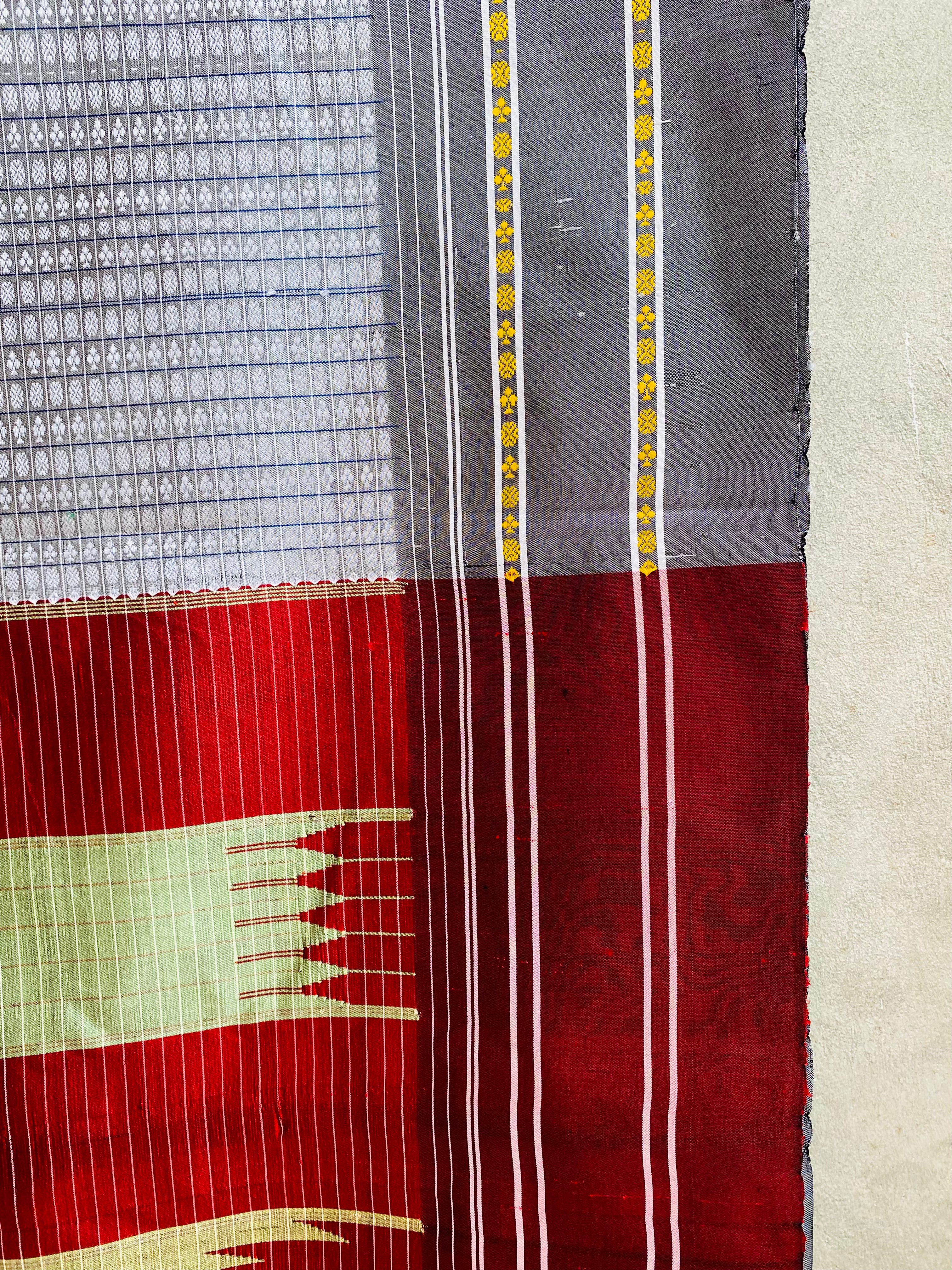Royal, majestic and gracious, this collection of pure mulberry silk Khunn sarees is a line that commands attention and is nothing short of a statement piece. 100% mulberry silk, woven on pitloom, this saree is the product of an effort of more than four years, relentless trials and tribulations to get the traditional looms fitted with 6 , 8, 10 dobby shafts allowing the range of Khunn motifs to be overlaid on the mulberry silk warp and weft; the permutations of the ply of the yarn on both warp and weft to get the feel of the saree just right; the ingenious finishing at the seams of the body giving way to the pallu. Each step in the process has been a journey in itself. A journey worth cherishing, a journey to now share with the discerning connoisseur of this classic art form.
