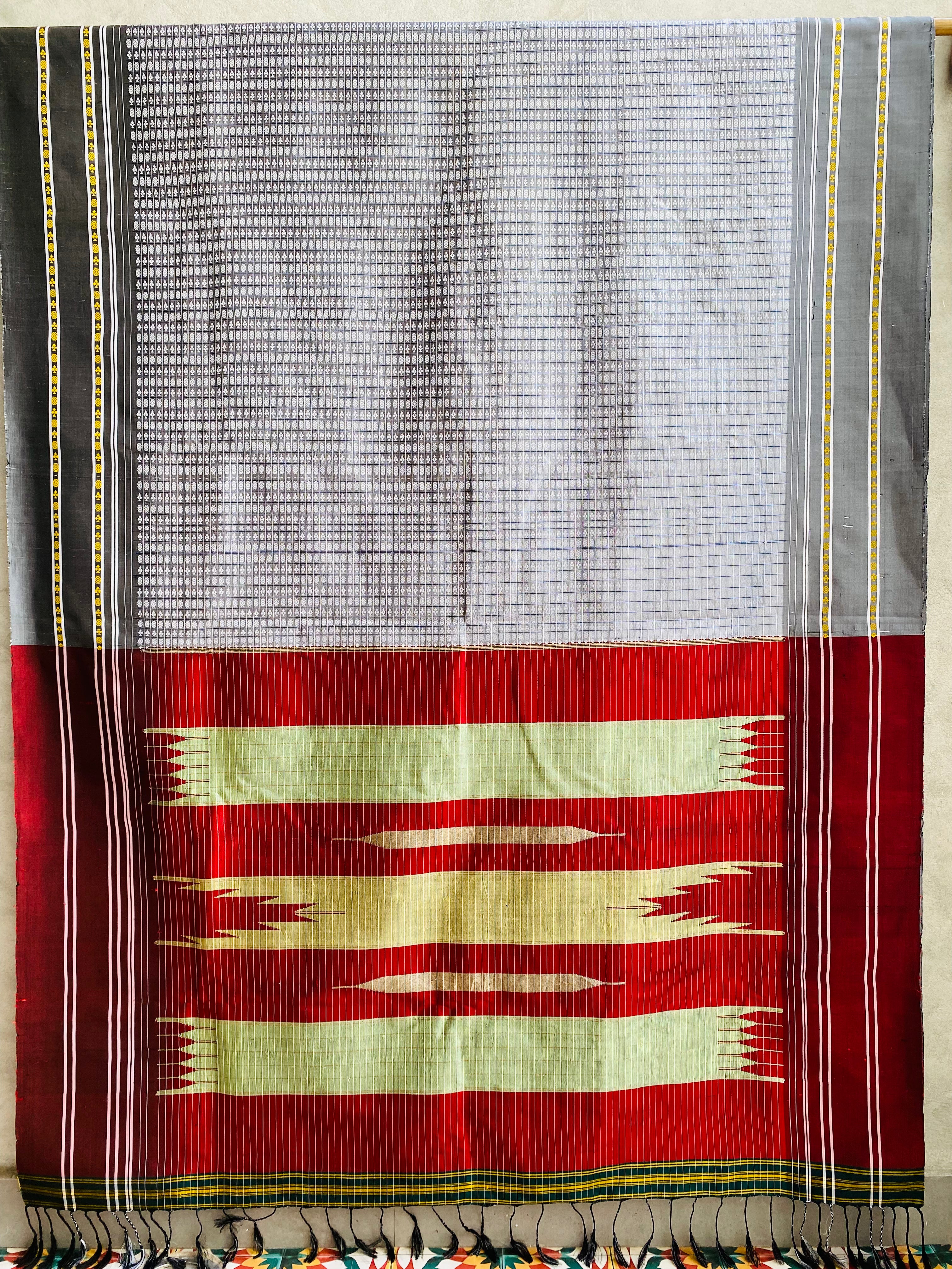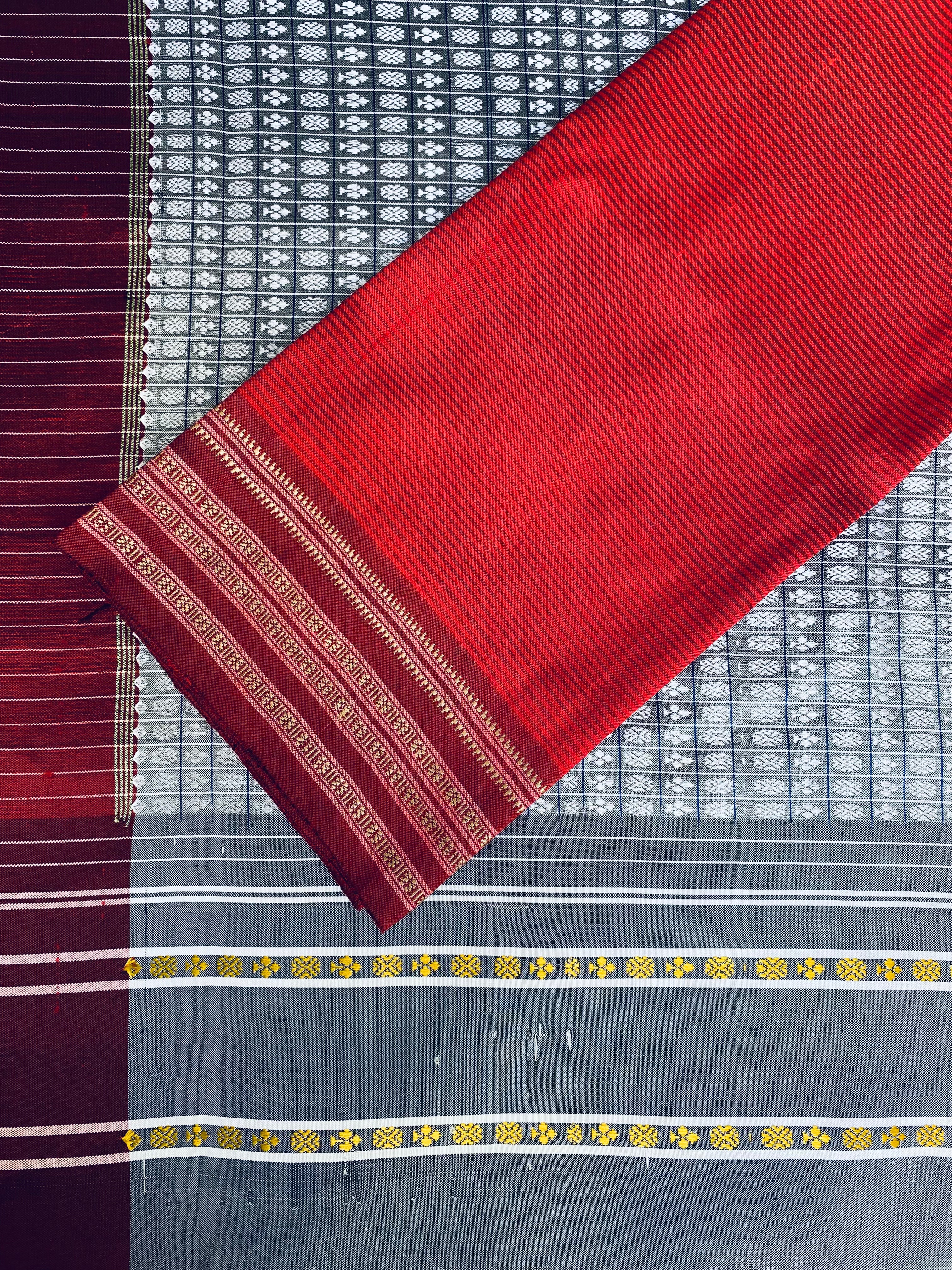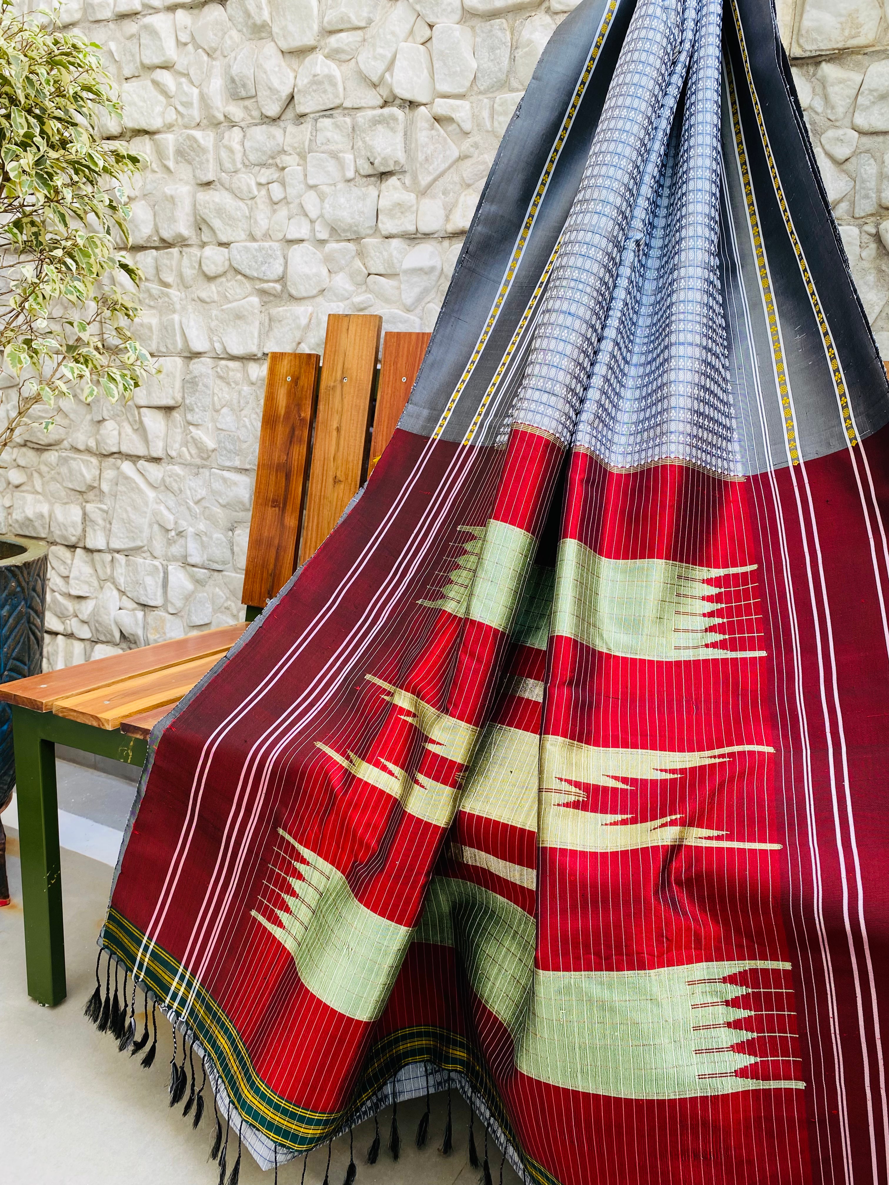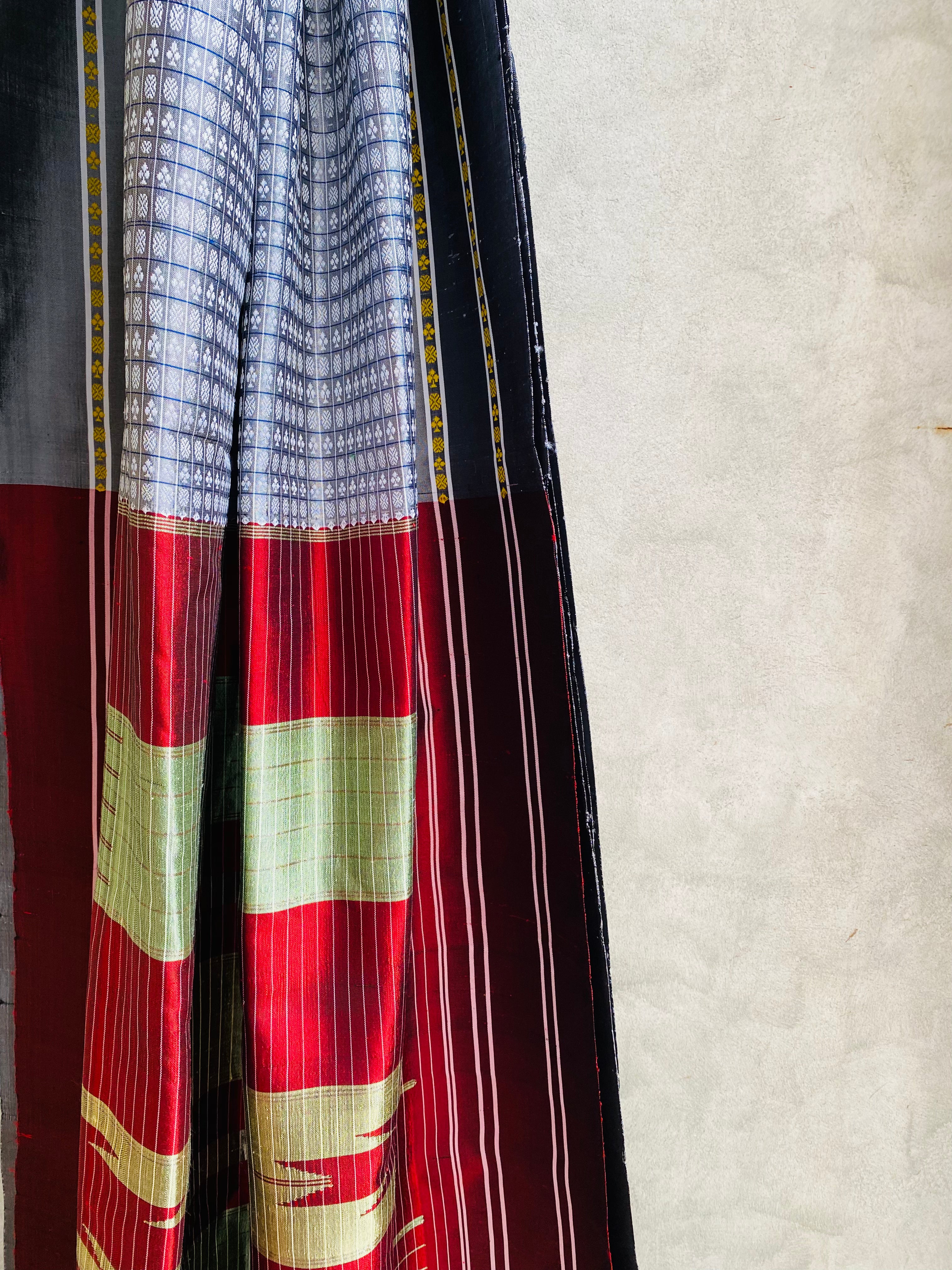 Royal, majestic and gracious, this collection of pure mulberry silk Khunn sarees is a line that commands attention and is nothing short of a statement piece. 100% mulberry silk, woven on pitloom, this saree is the product of an effort of more than four years, relentless trials and tribulations to get the traditional looms fitted with 6 , 8, 10 dobby shafts allowing the range of Khunn motifs to be overlaid on the mulberry silk warp and weft; the permutations of the ply of the yarn on both warp and weft to get the feel of the saree just right; the ingenious finishing at the seams of the body giving way to the pallu. Each step in the process has been a journey in itself. A journey worth cherishing, a journey to now share with the discerning connoisseur of this classic art form.