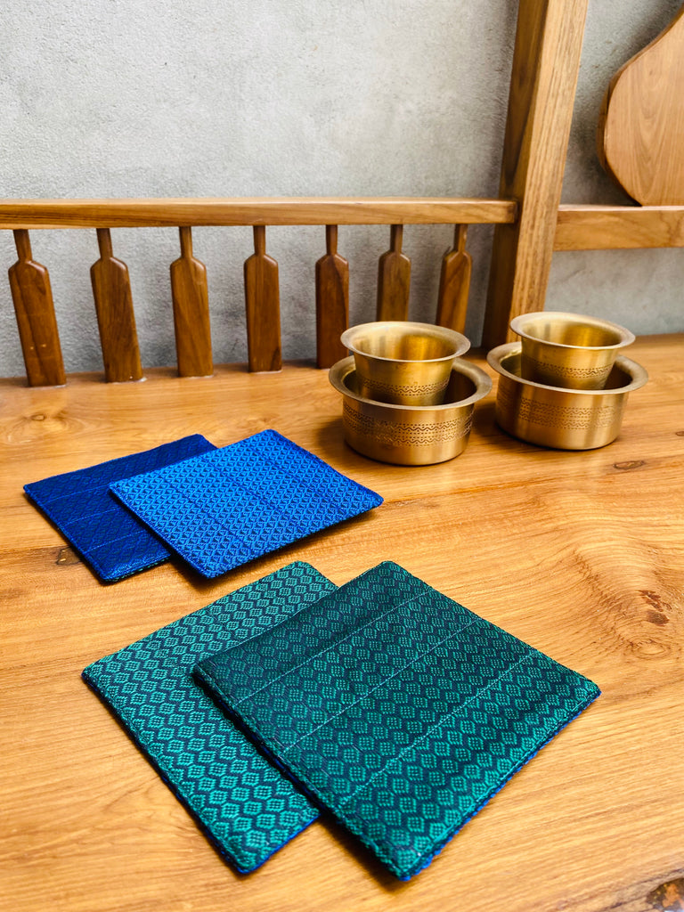 Khunn Fabric Blue/Green Coasters (set of 4, reversible)
