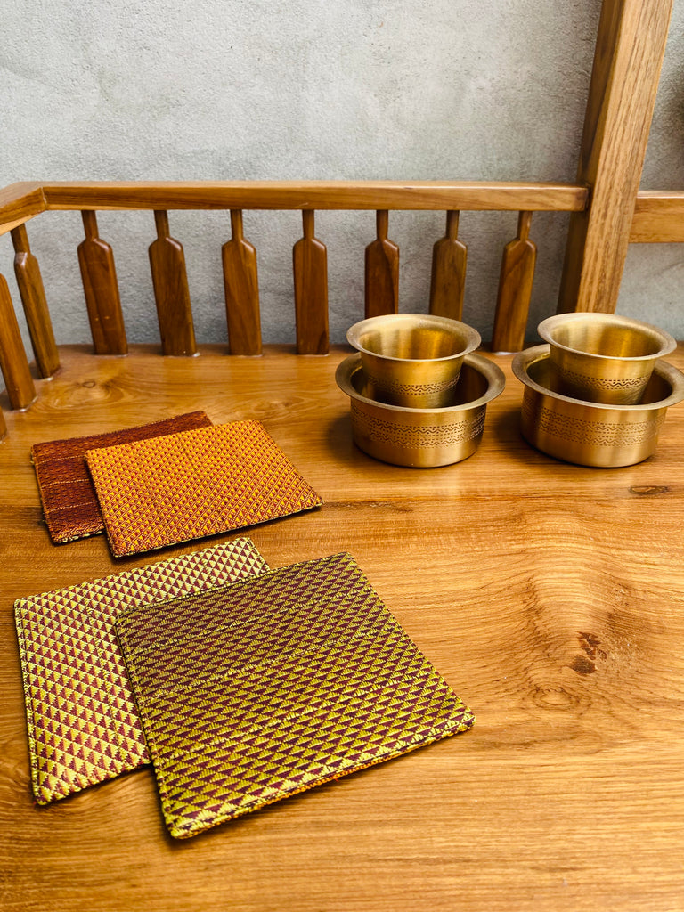 Khunn Fabric Gold/Orange Coasters (set of 4, reversible)