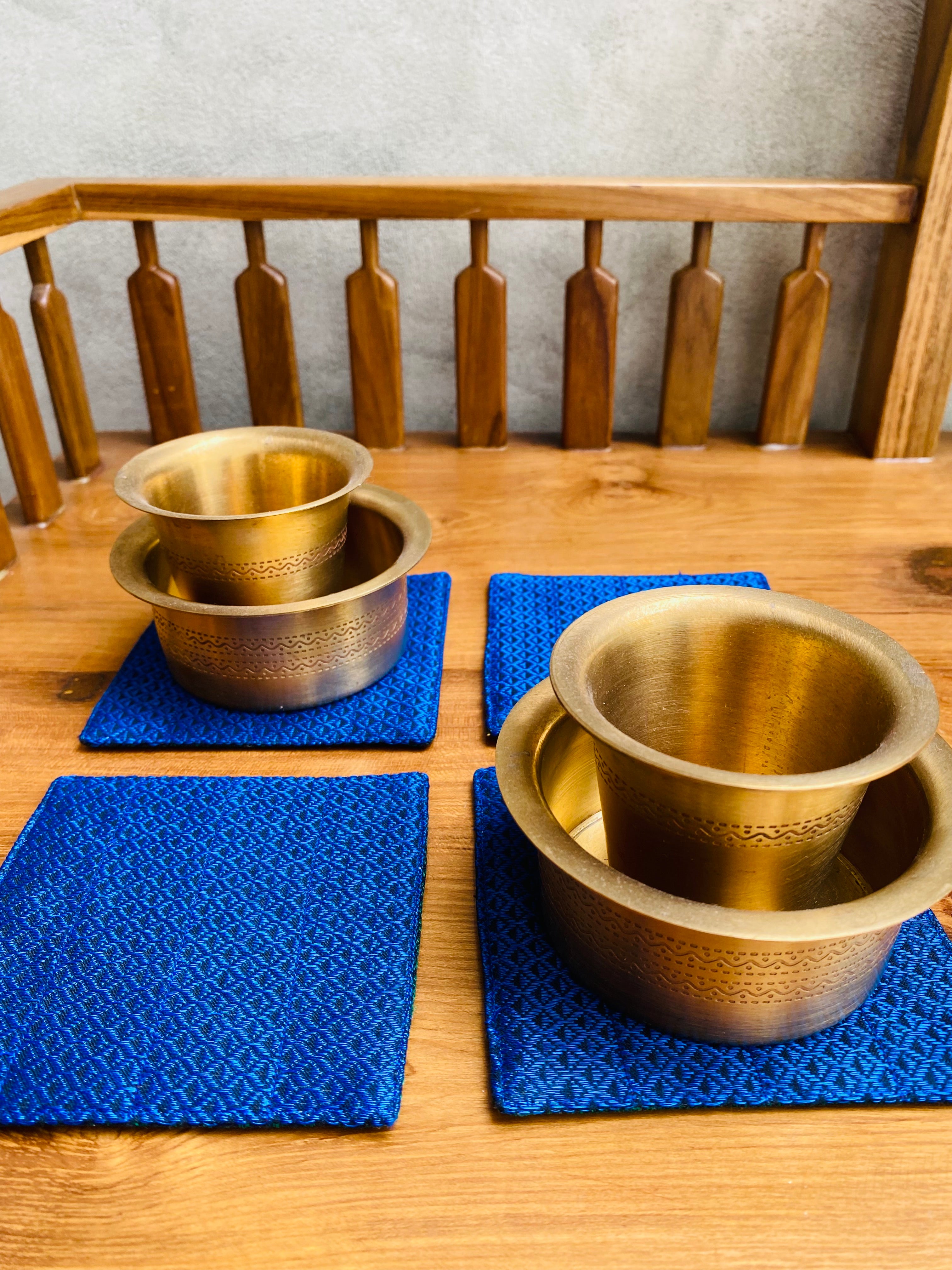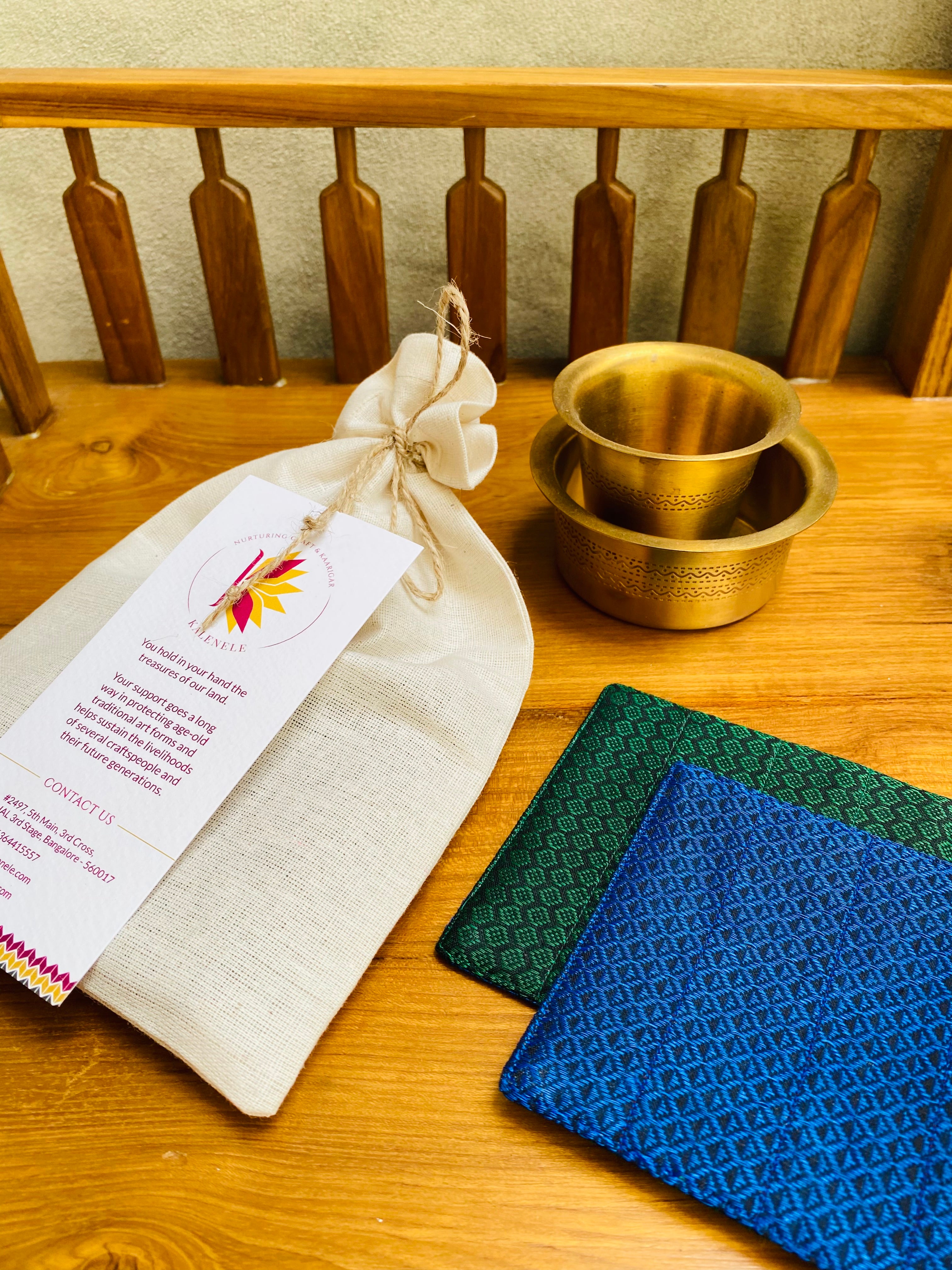 Woven in the timeless Khunn traditional weave, these cotton coasters celebrate the joy of colour and craft. Designed with two contrasting sides, each coaster is fully reversible and finished with a clean topstitch for added strength and beauty. A small but meaningful way to bring artisanal warmth to your coffee table, dining space, or gifting. Lightweight yet durable, they add a touch of colour and modern craft to any setting — everyday essentials with a thoughtful, handmade edge.