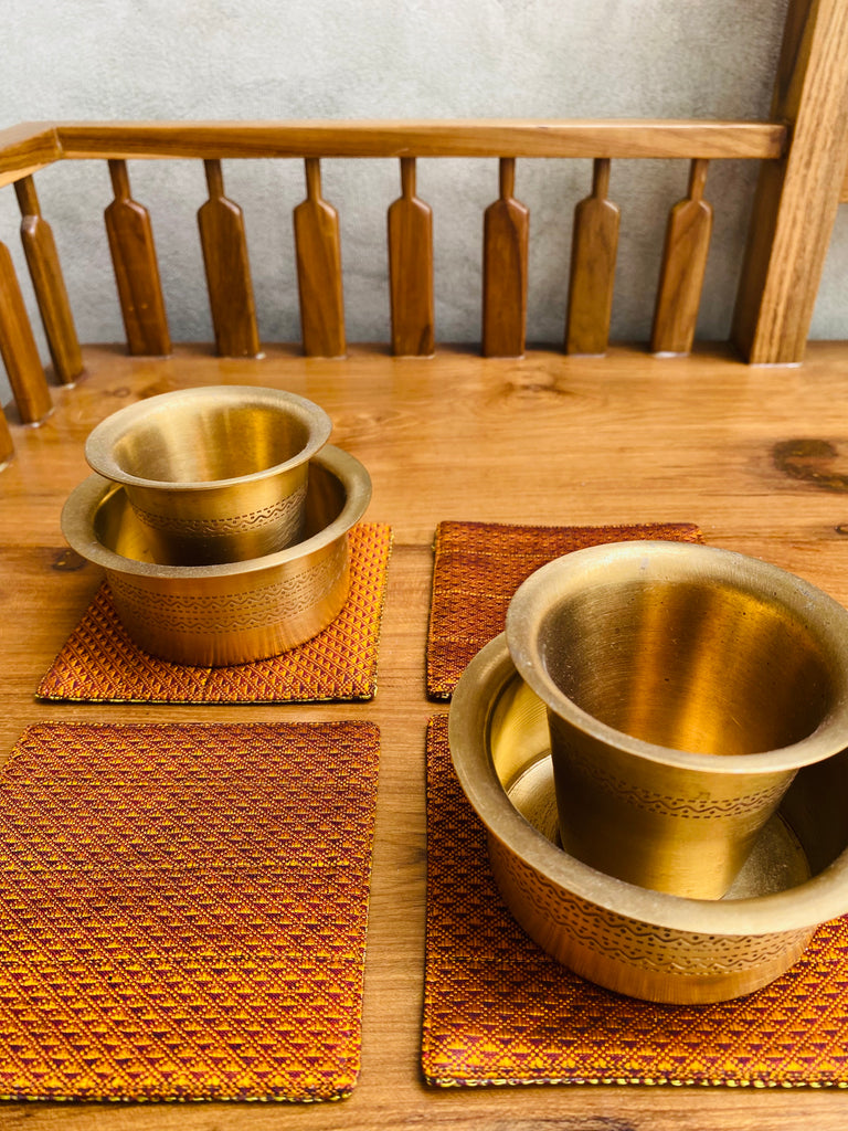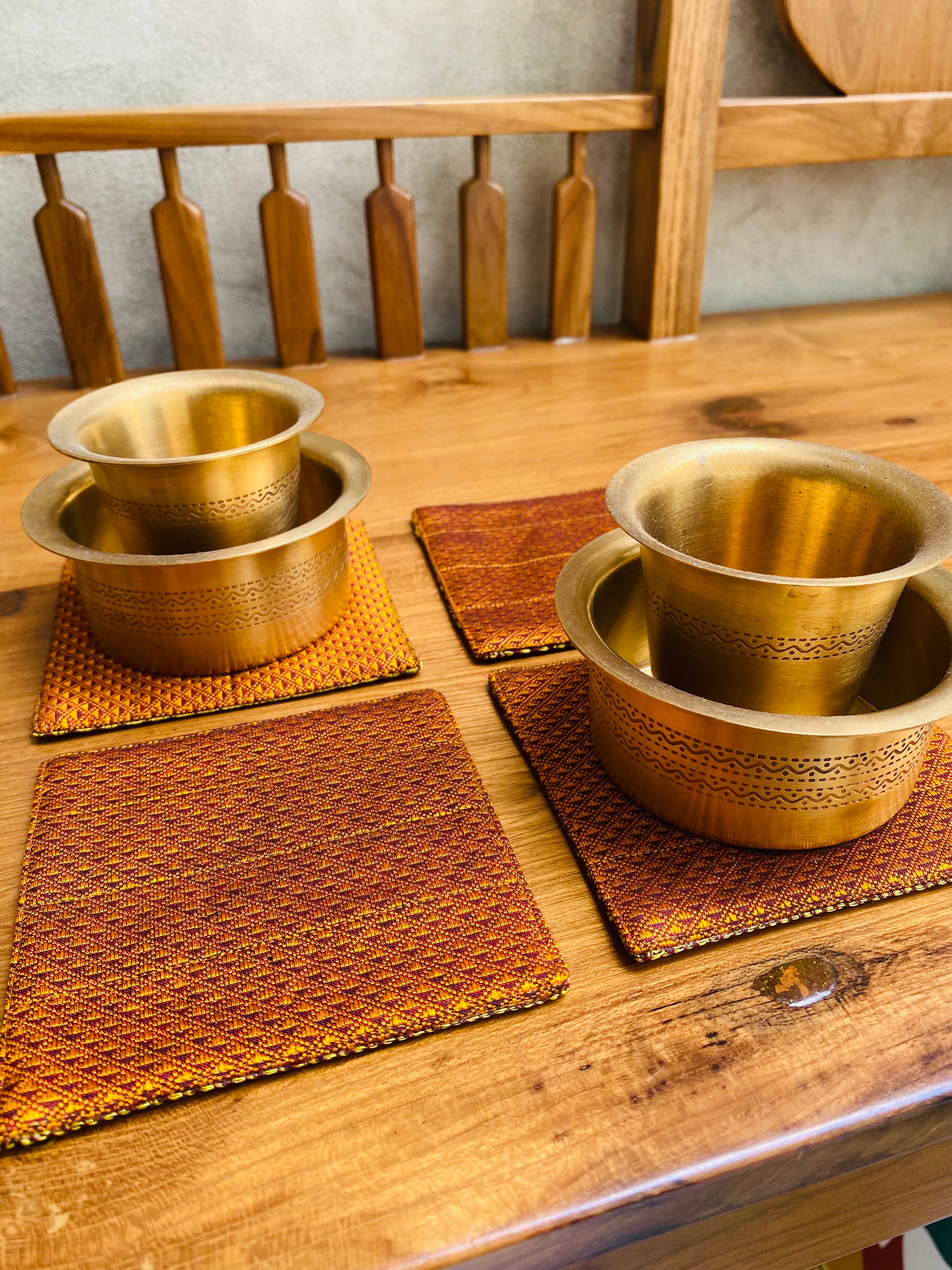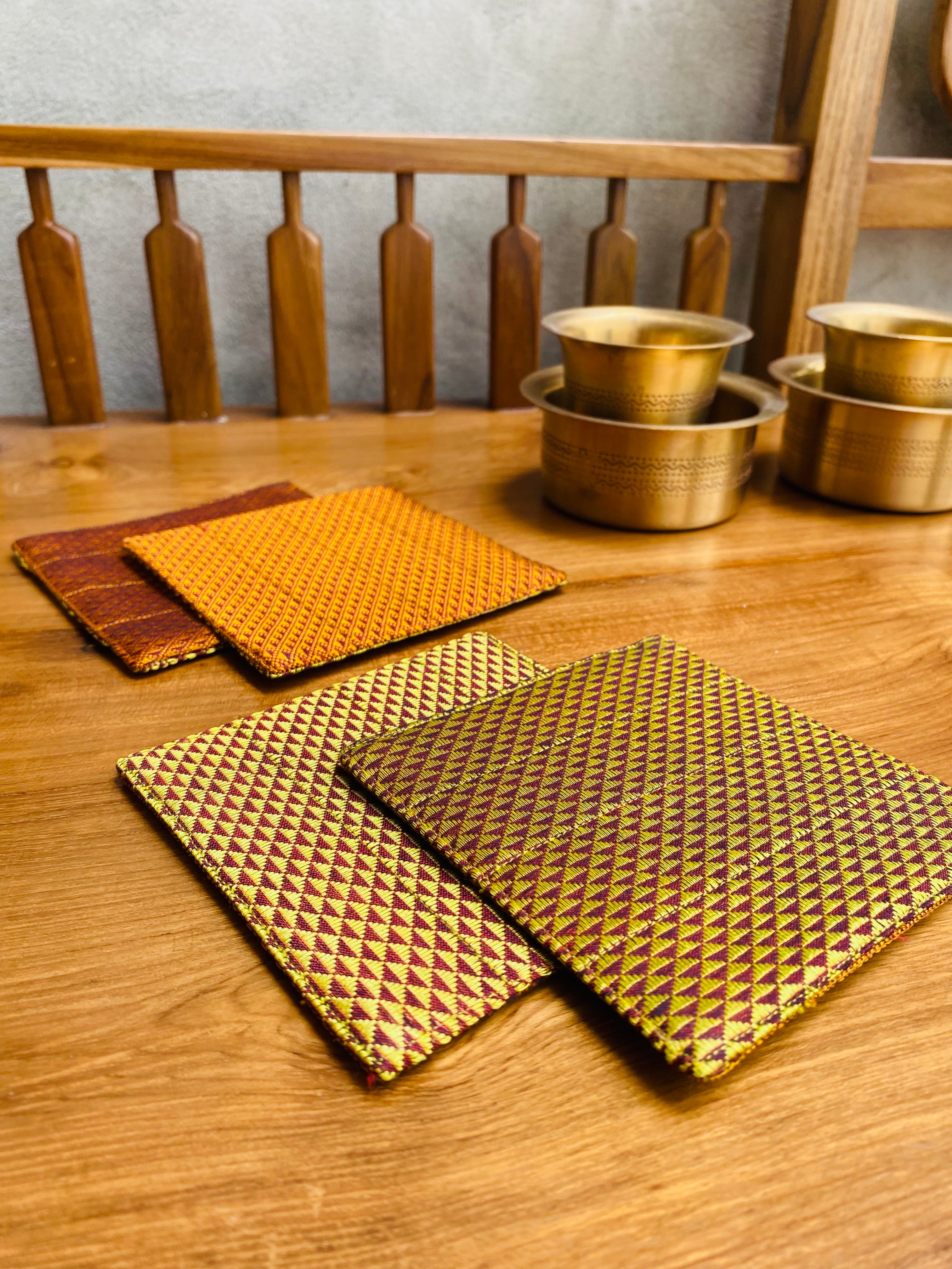 Khunn Fabric Gold/Orange Coasters (set of 4, reversible)