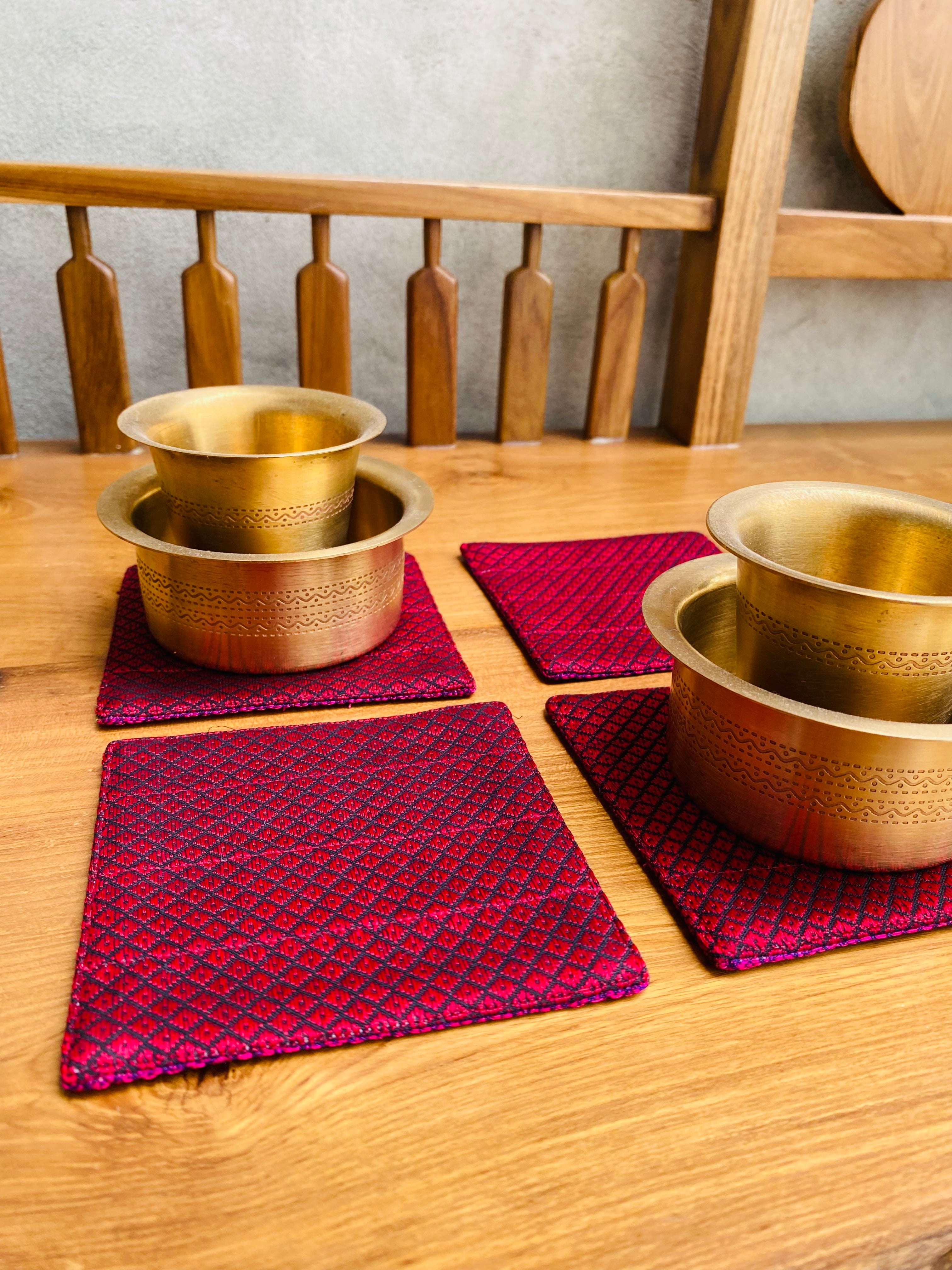 Khunn Fabric Red/Fuchsia Coasters (set of 4, reversible)