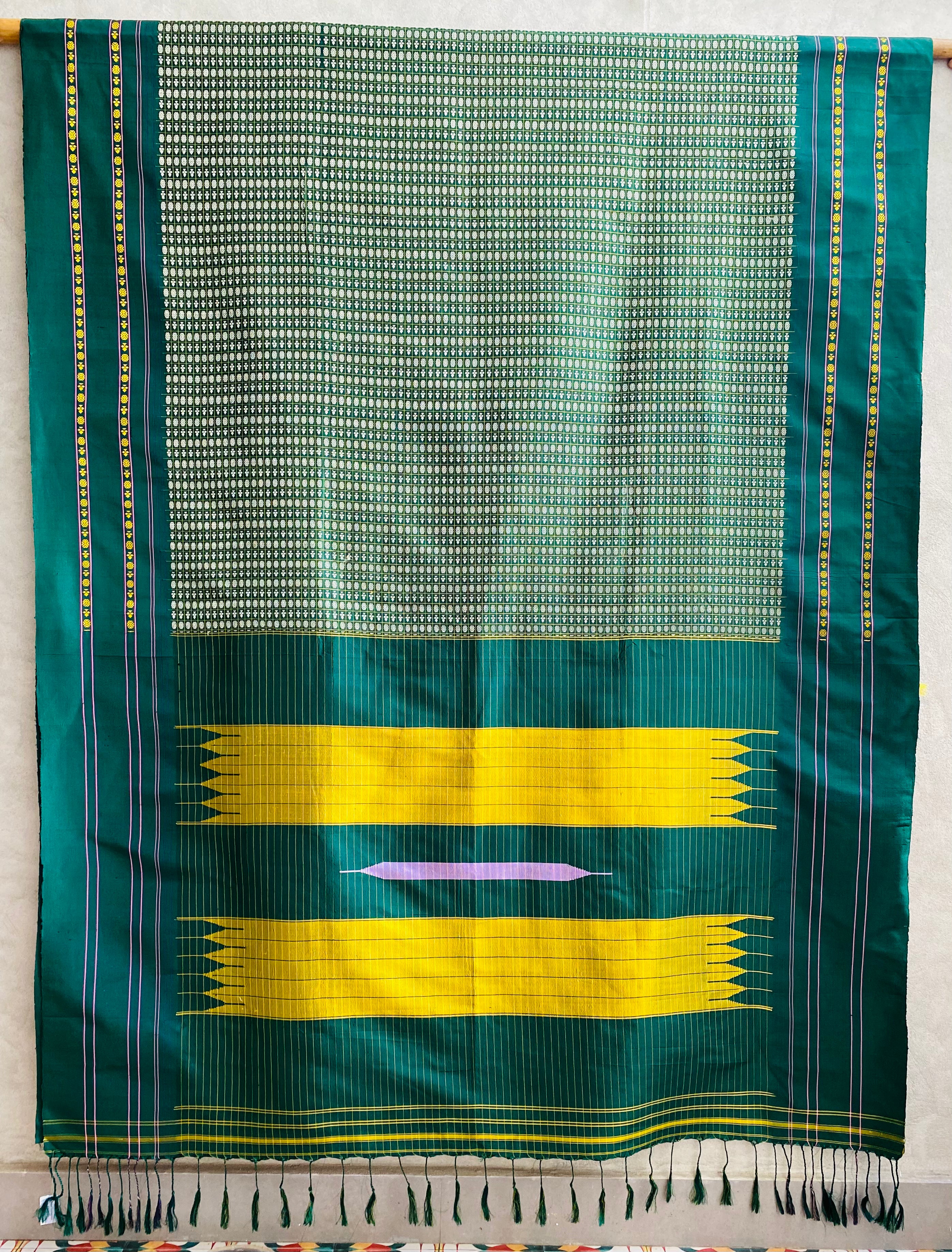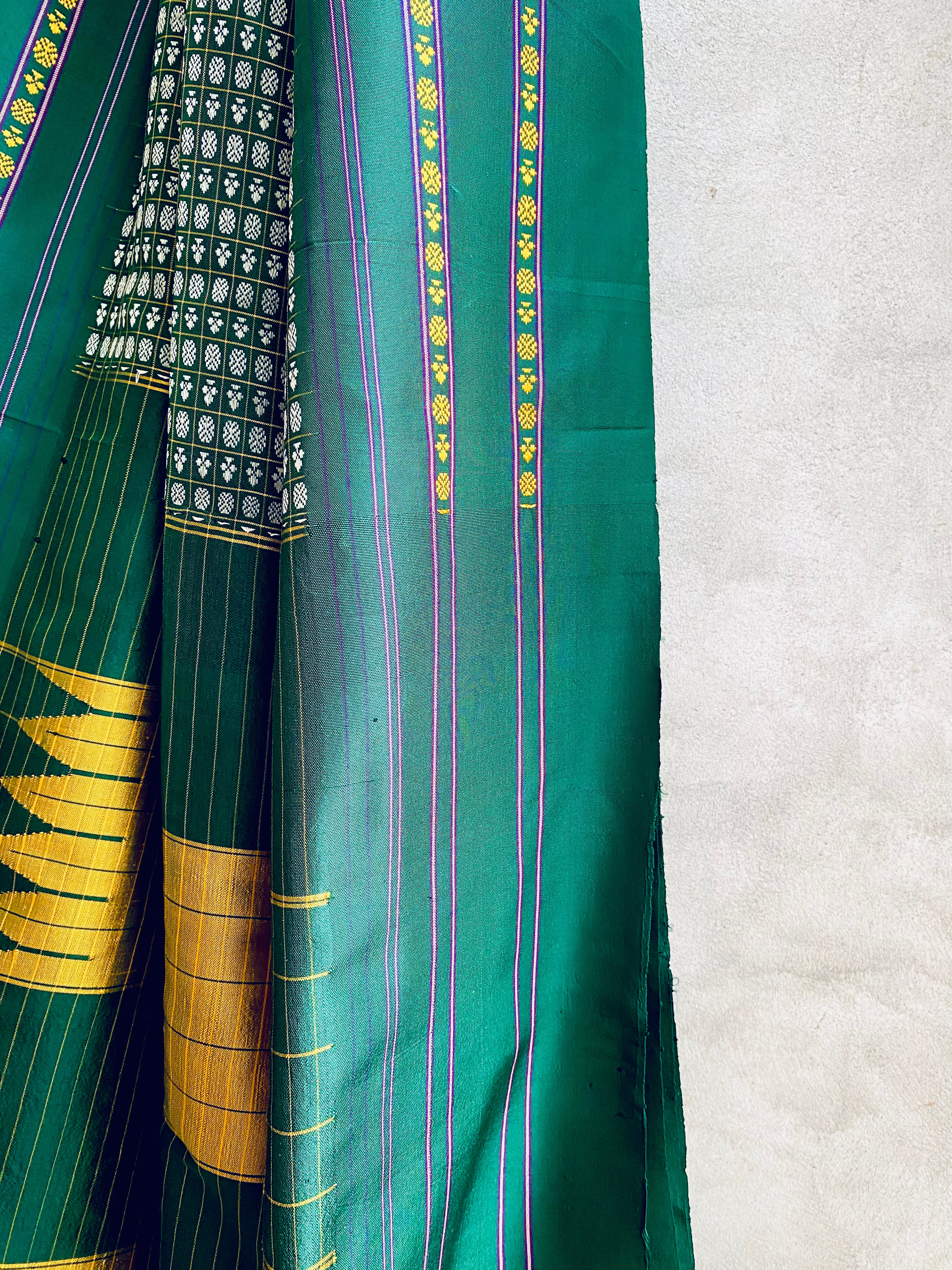 Royal, majestic and gracious, this collection of pure mulberry silk Khunn sarees is a line that commands attention and is nothing short of a statement piece. 100% mulberry silk, woven on pitloom, this saree is the product of an effort of more than four years, relentless trials and tribulations to get the traditional looms fitted with 6 , 8, 10 dobby shafts allowing the range of Khunn motifs to be overlaid on the mulberry silk warp and weft; the permutations of the ply of the yarn on both warp and weft to get the feel of the saree just right; the ingenious finishing at the seams of the body giving way to the pallu. Each step in the process has been a journey in itself. A journey worth cherishing, a journey to now share with the discerning connoisseur of this classic art form.
