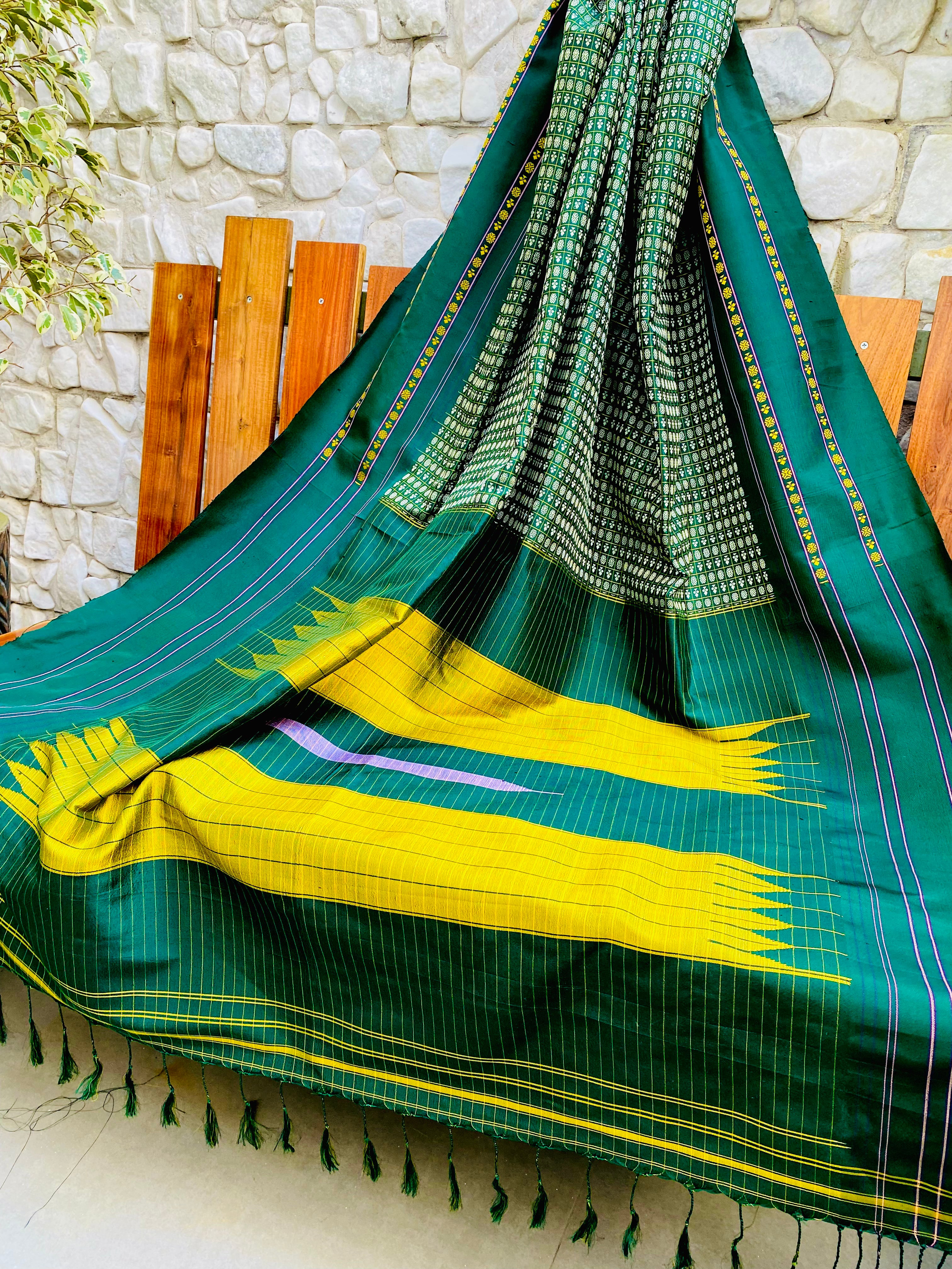 Aparanji. The traditional borders of our ‘Aparanji’ series. ‘Aparanji’, meaning pure gold, the making of something brilliant. From the mind of the designer to the hands of the weavers and finally to the hearts of those who possess this thing of beauty. As close as it can get to it’s purest, most traditional form as a saree, this piece of art is truly stunning. Some with colours of old, the original. Some reinterpreted with colours that make your eyes look upon this saree with pure satisfaction.