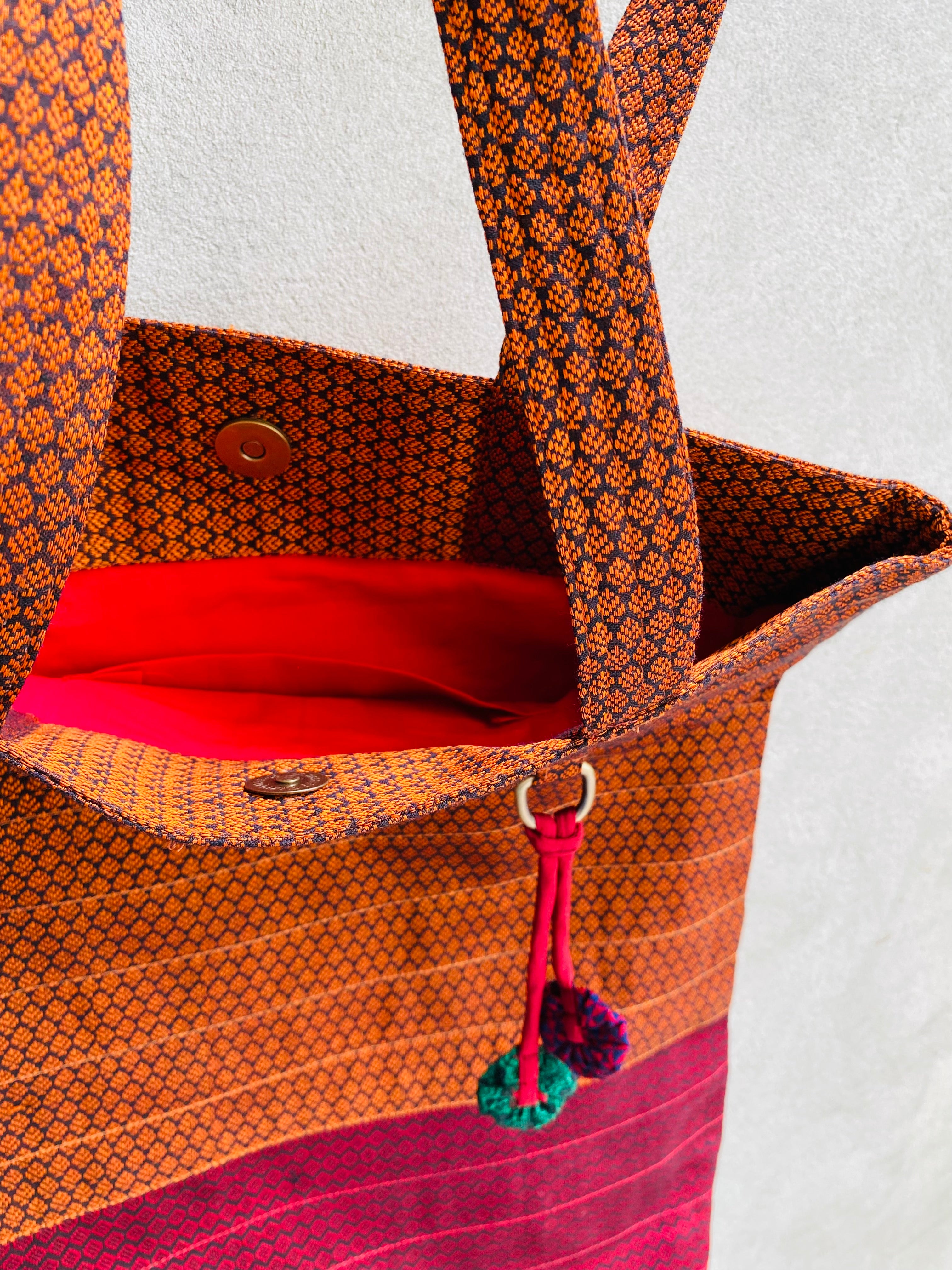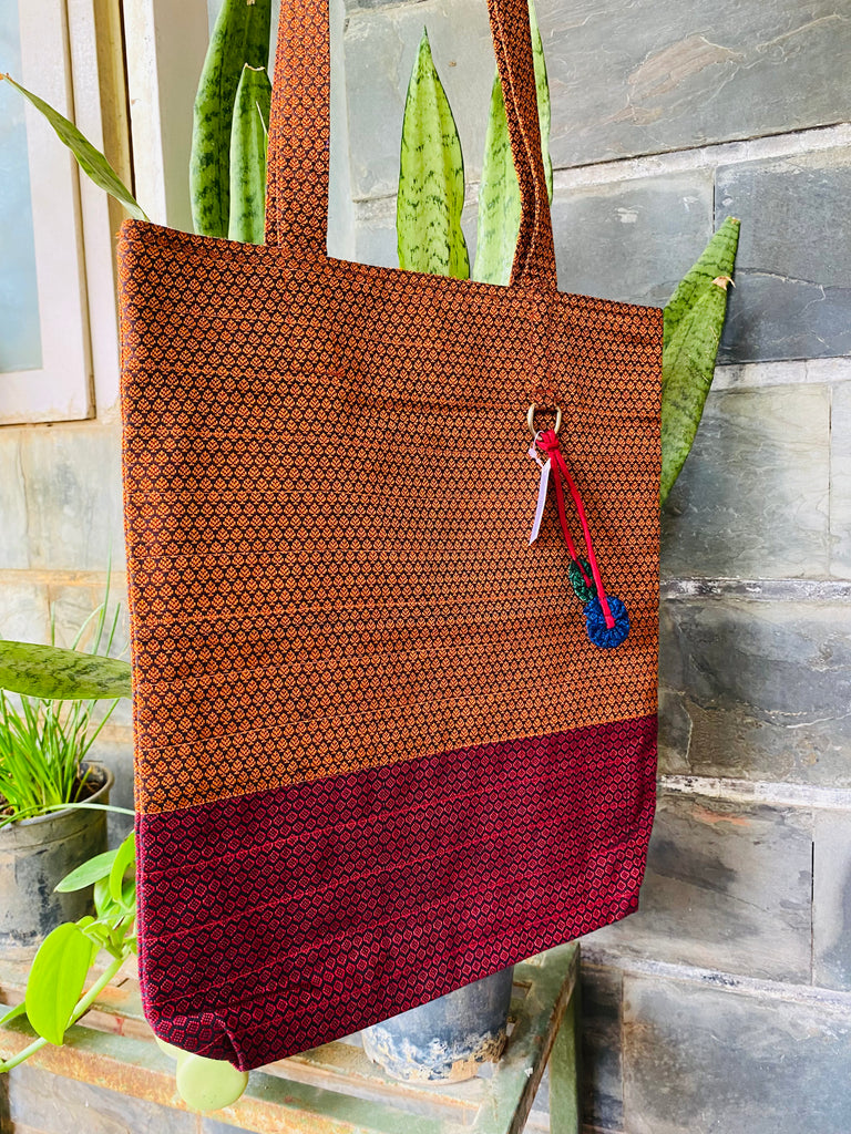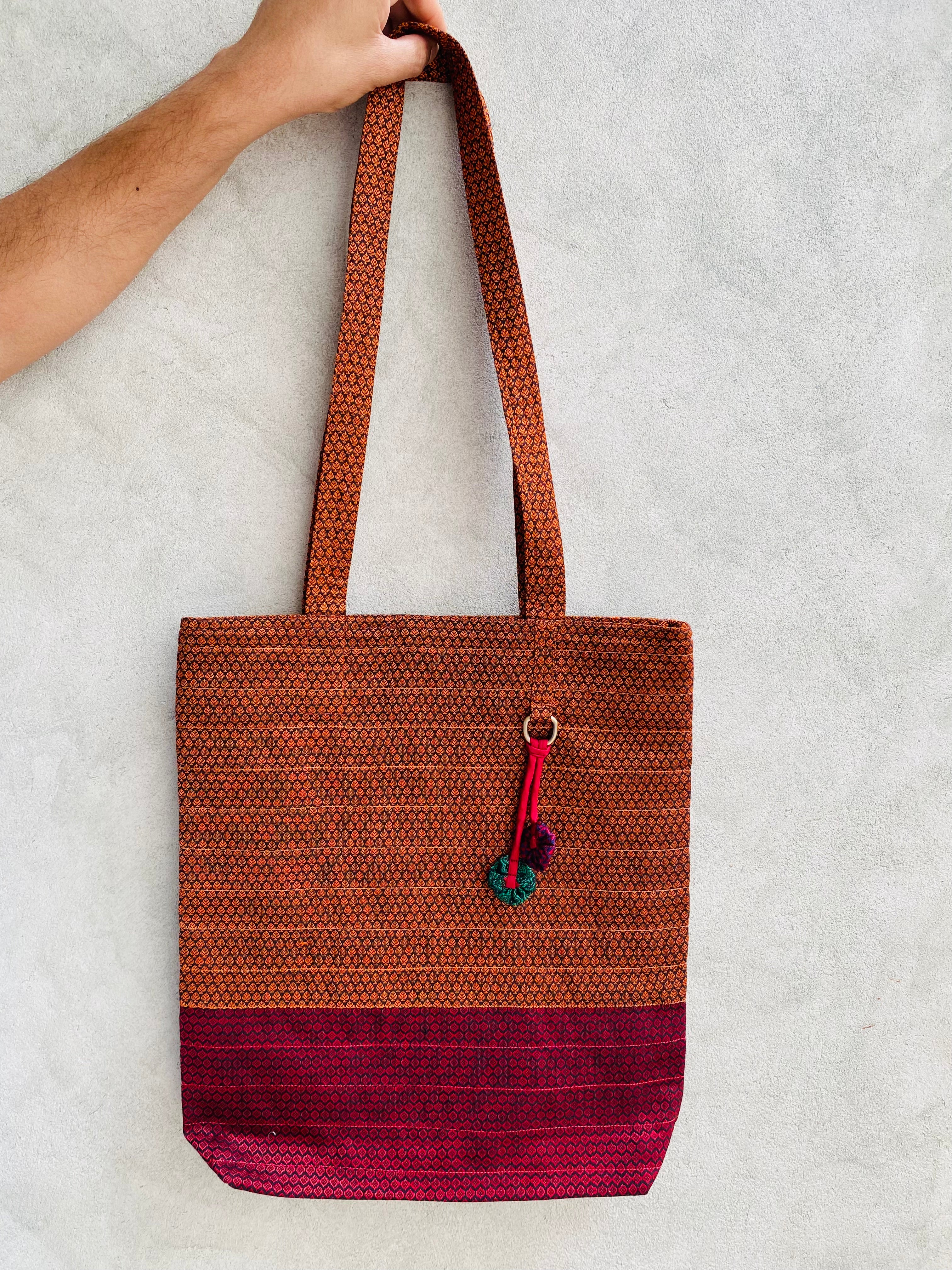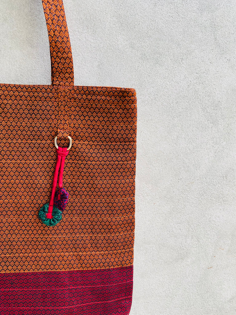 Rooted in the vibrant heritage of Khunn weaving, this tote brings together striking contrast shades to create a bold yet refined design. The textured fabric gives it character, while the clean construction ensures durability and comfort. Spacious, functional and beautifully crafted—your ideal companion for daily errands, work days or travel to carry along your laptop or notebooks with all your must-haves.