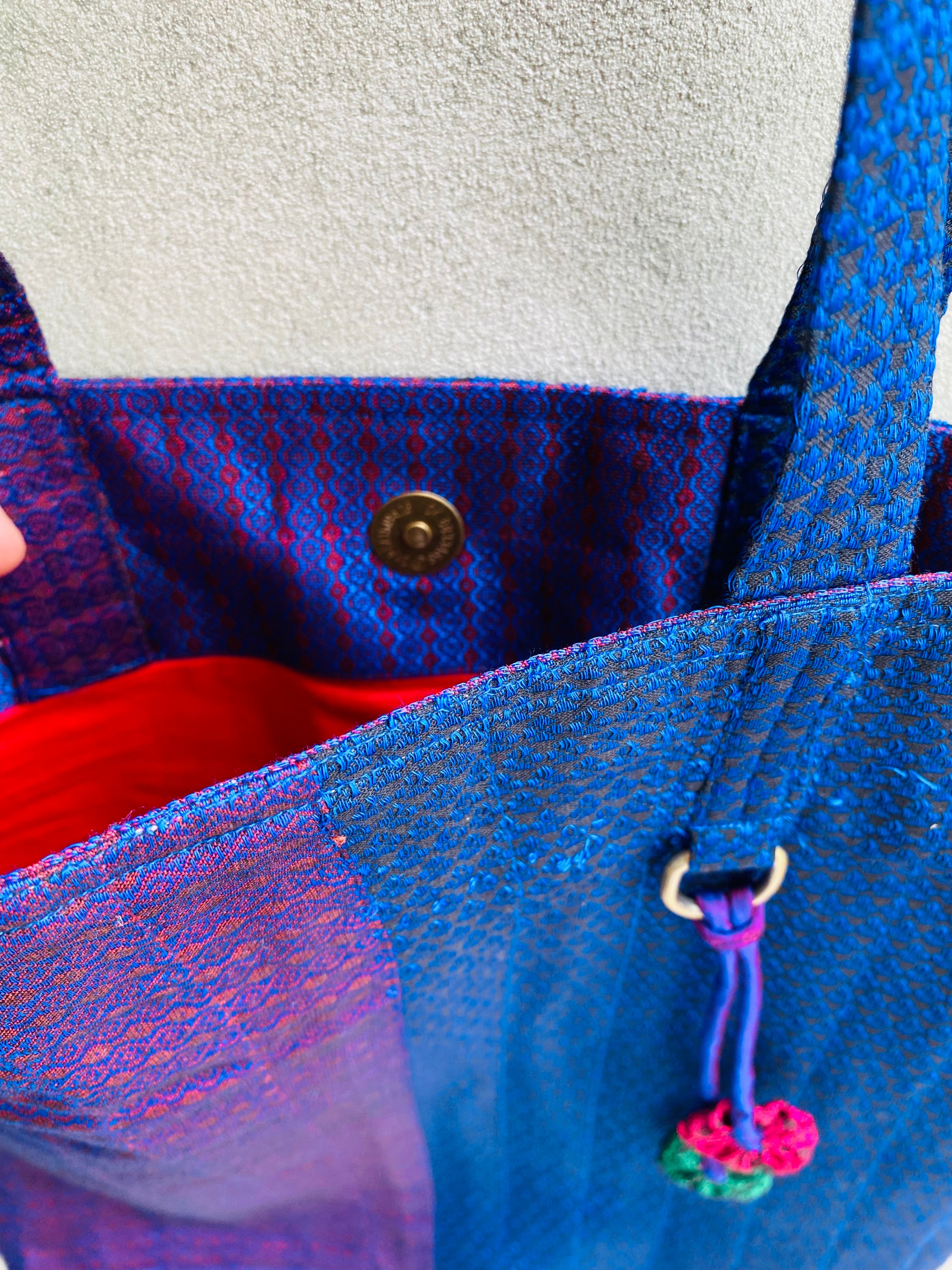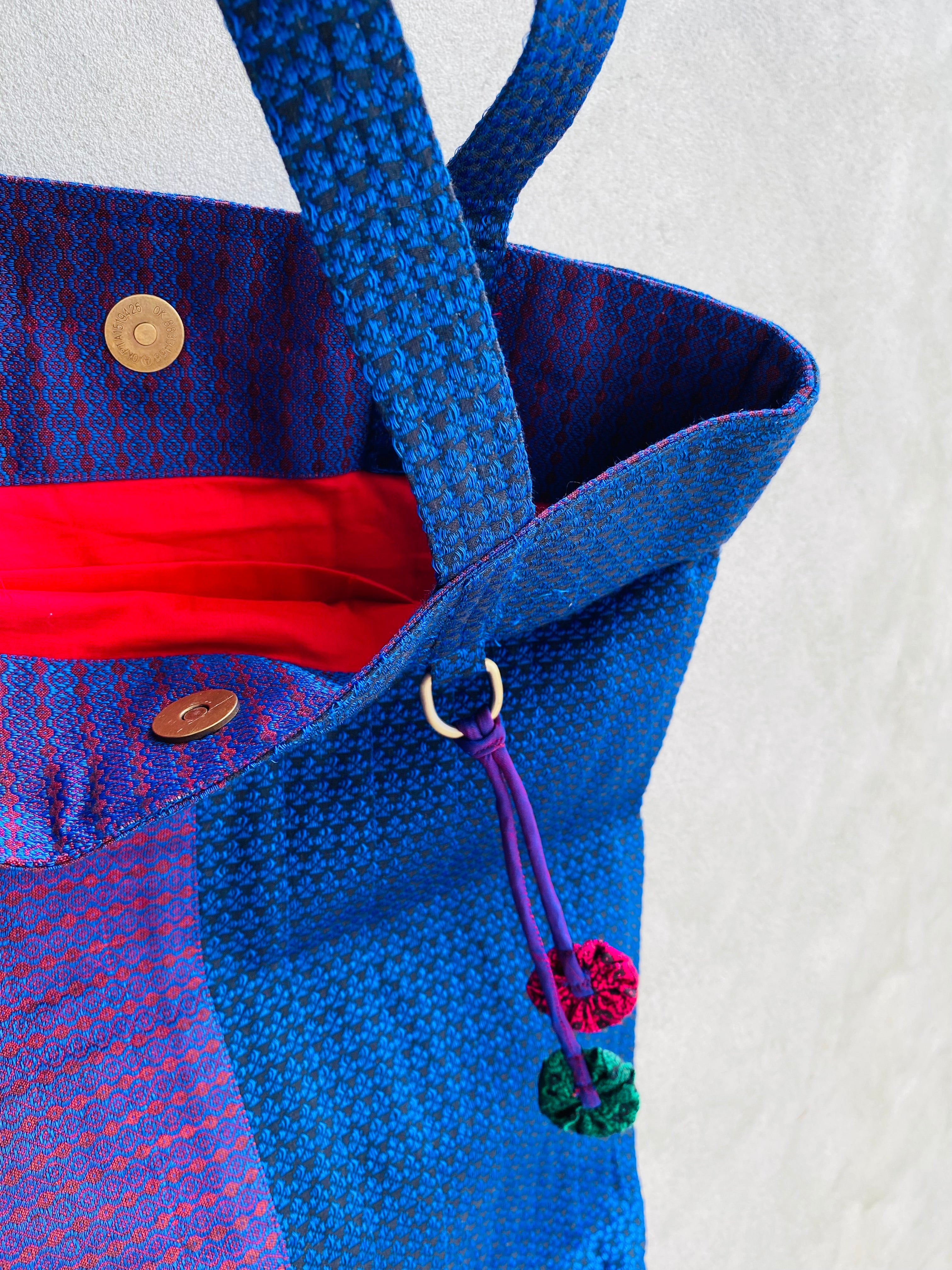 Rooted in the vibrant heritage of Khunn weaving, this tote brings together striking contrast shades to create a bold yet refined design. The textured fabric gives it character, while the clean construction ensures durability and comfort. Spacious, functional and beautifully crafted—your ideal companion for daily errands, work days or travel to carry along your laptop or notebooks with all your must-haves.