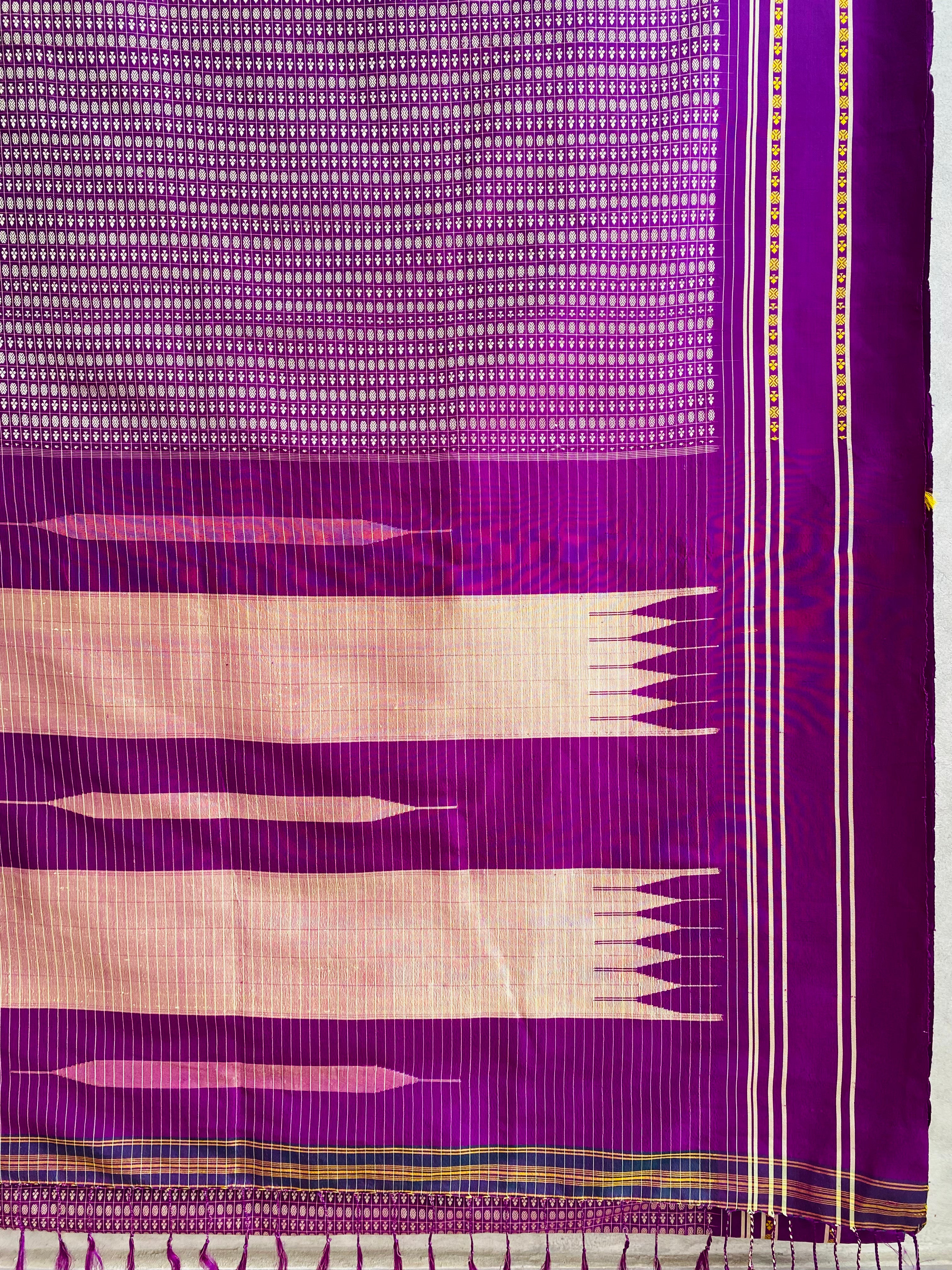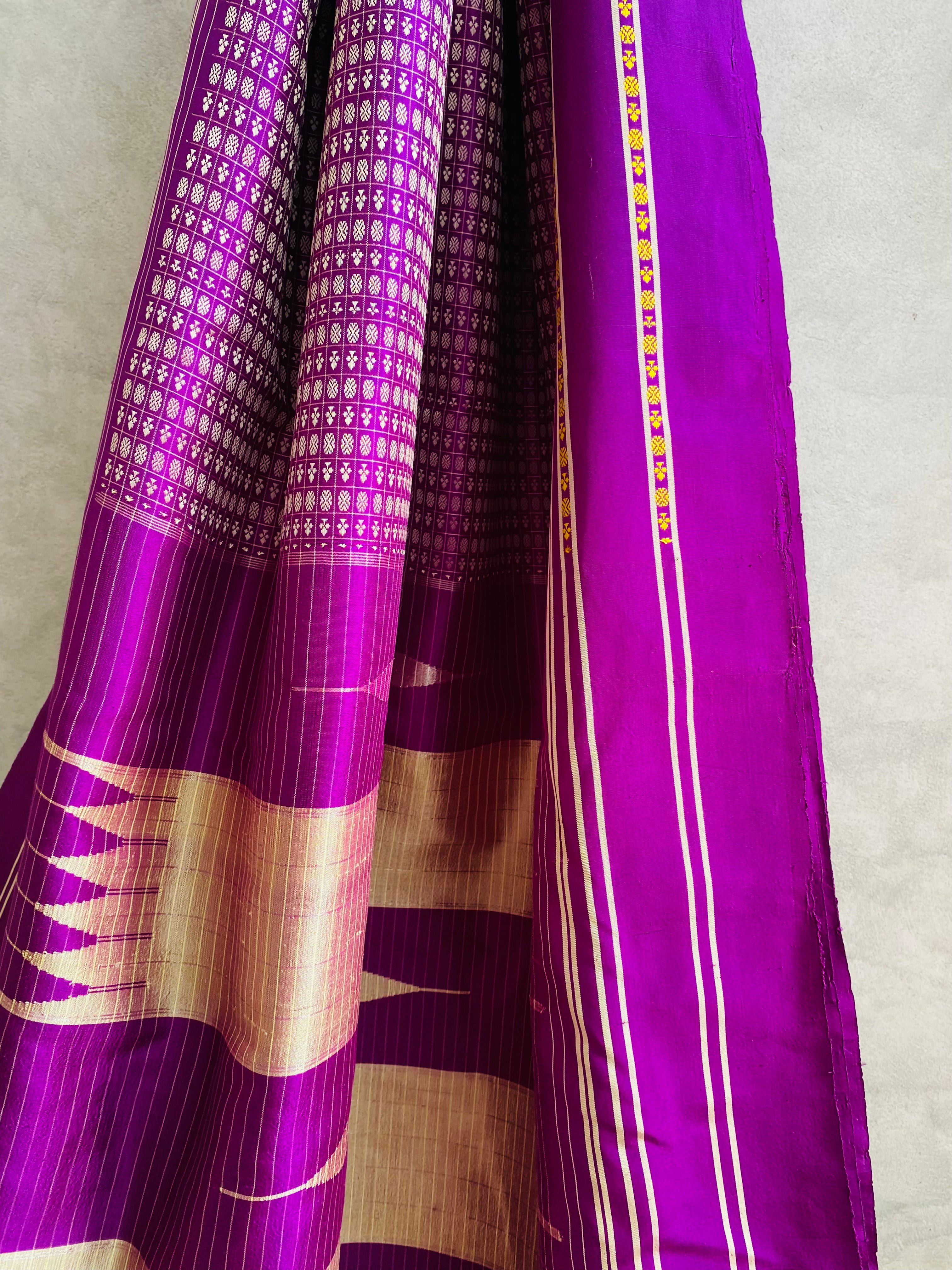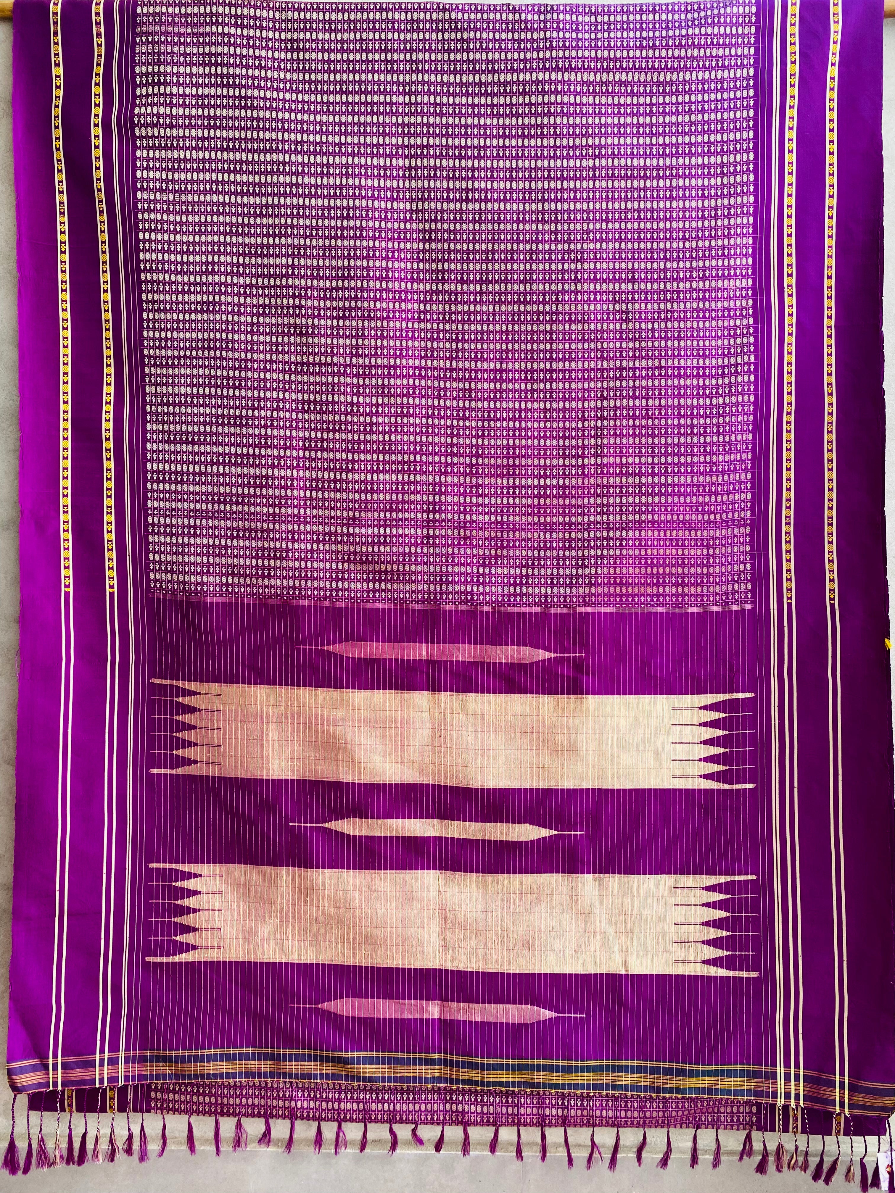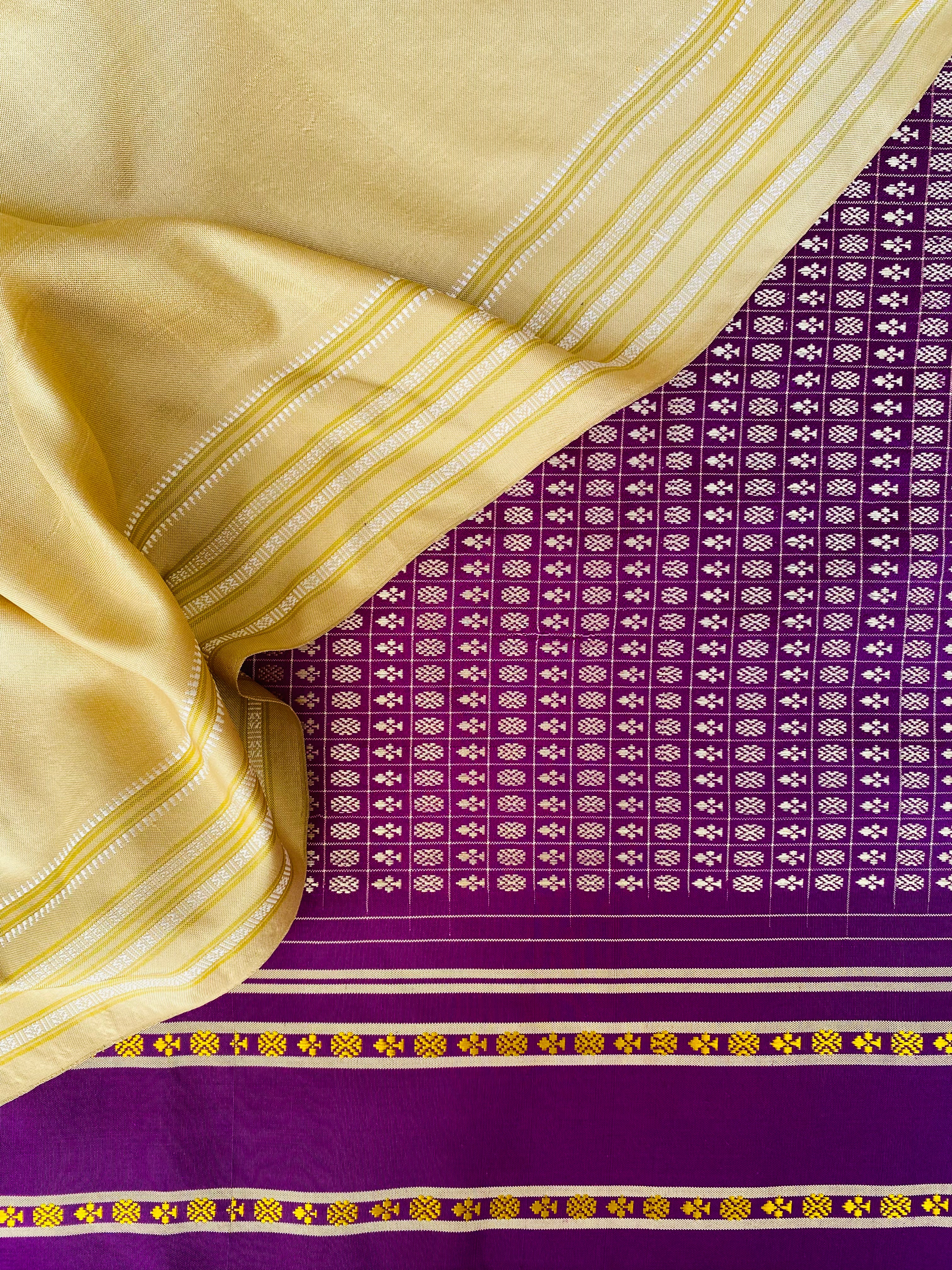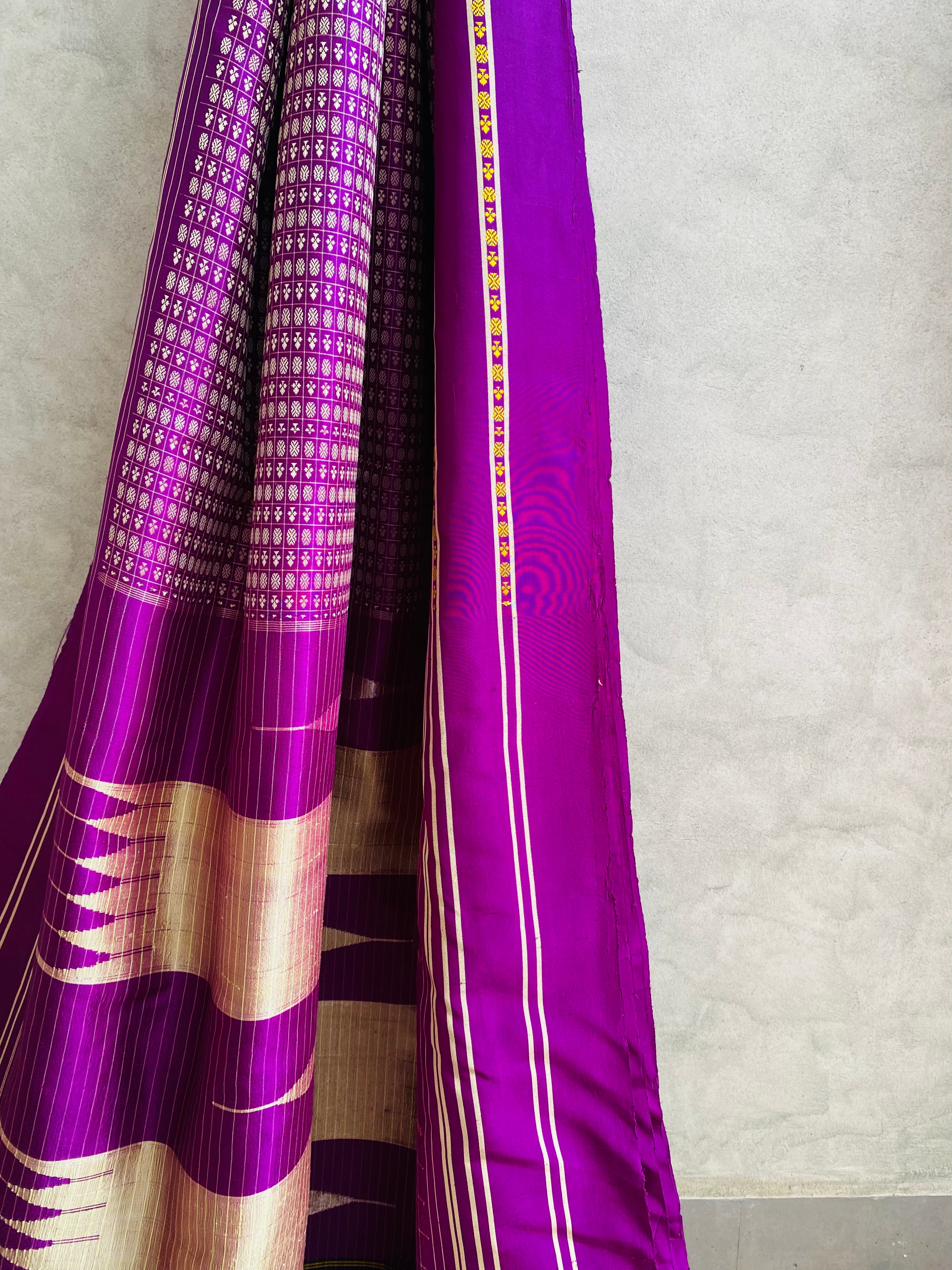 Royal, majestic and gracious, this collection of pure mulberry silk Khunn sarees is a line that commands attention and is nothing short of a statement piece. 100% mulberry silk, woven on pitloom, this saree is the product of an effort of more than four years, relentless trials and tribulations to get the traditional looms fitted with 6 , 8,10 dobby shafts allowing the range of Khunn motifs to be overlaid on the mulberry silk warp and weft; the permutations of the ply of the yarn on both warp and weft to get the feel of the saree just right; the ingenious finishing at the seams of the body giving way to the pallu. Each step in the process has been a journey in itself. A journey worth cherishing, a journey to now share with the discerning connoisseur of this classic art form.