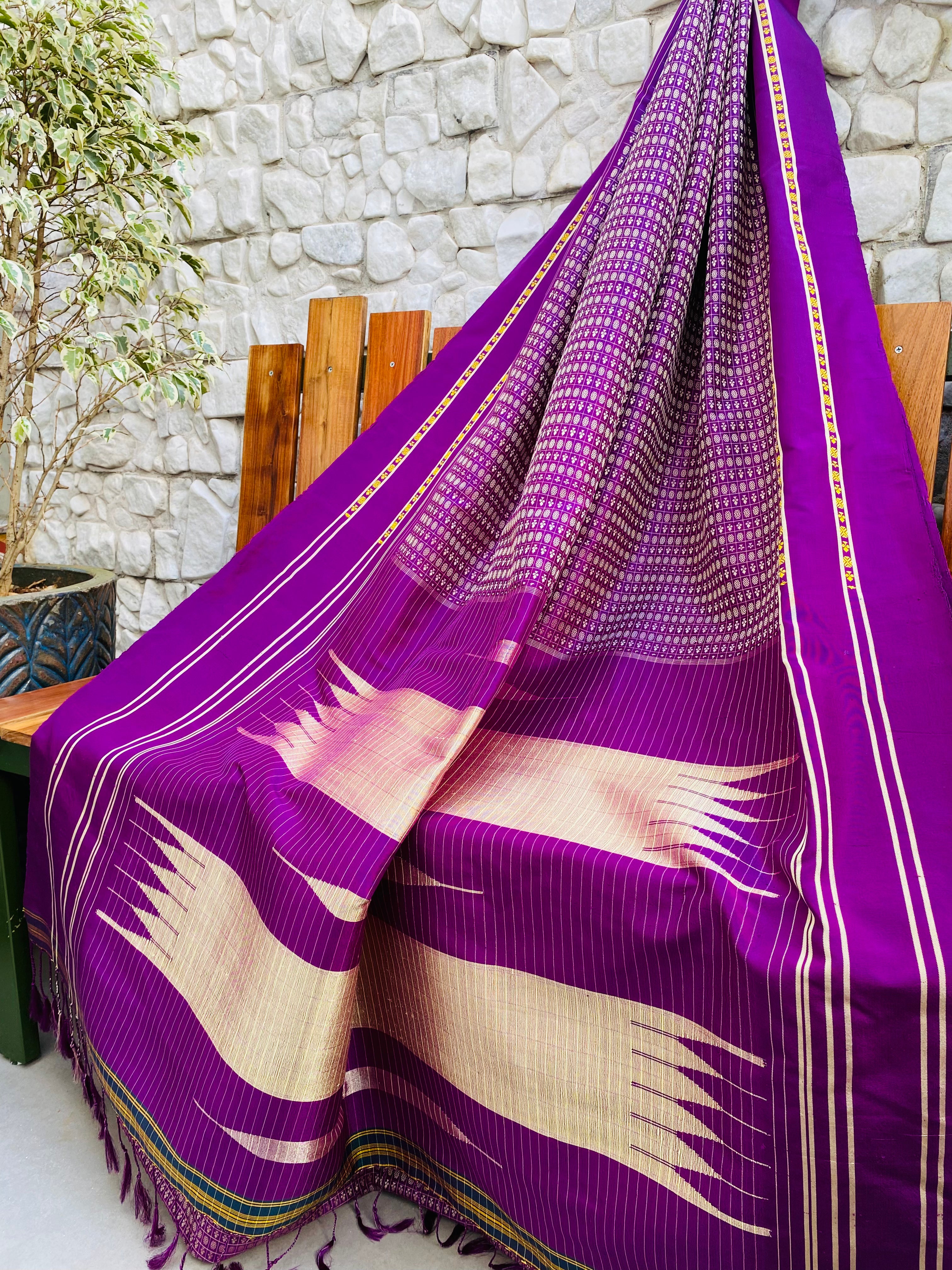 Aparanji. The traditional borders of our ‘Aparanji’ series. ‘Aparanji’, meaning pure gold, the making of something brilliant. From the mind of the designer to the hands of the weavers and finally to the hearts of those who possess this thing of beauty. As close as it can get to it’s purest, most traditional form as a saree, this piece of art is truly stunning. Some with colours of old, the original. Some reinterpreted with colours that make your eyes look upon this saree with pure satisfaction.