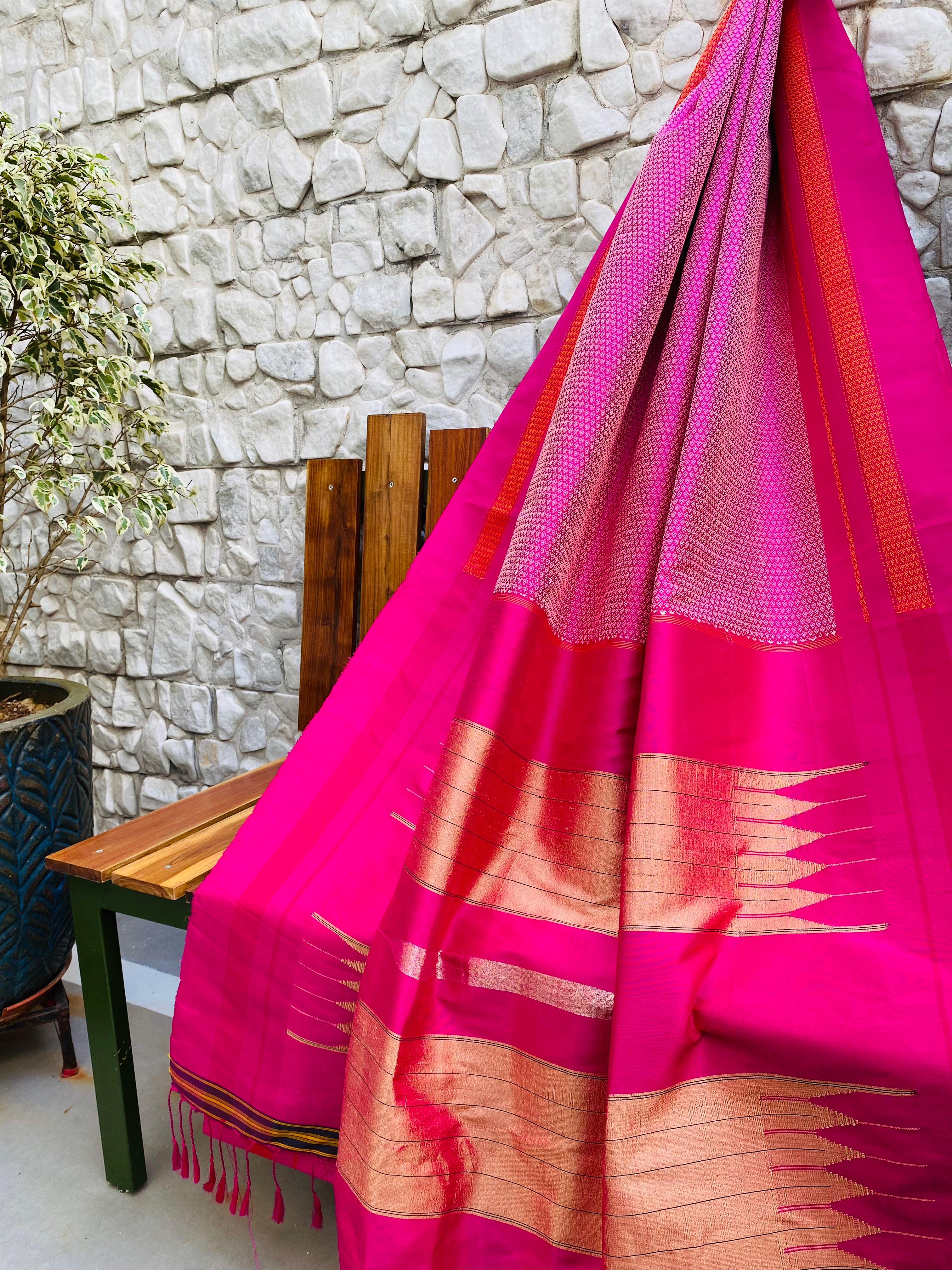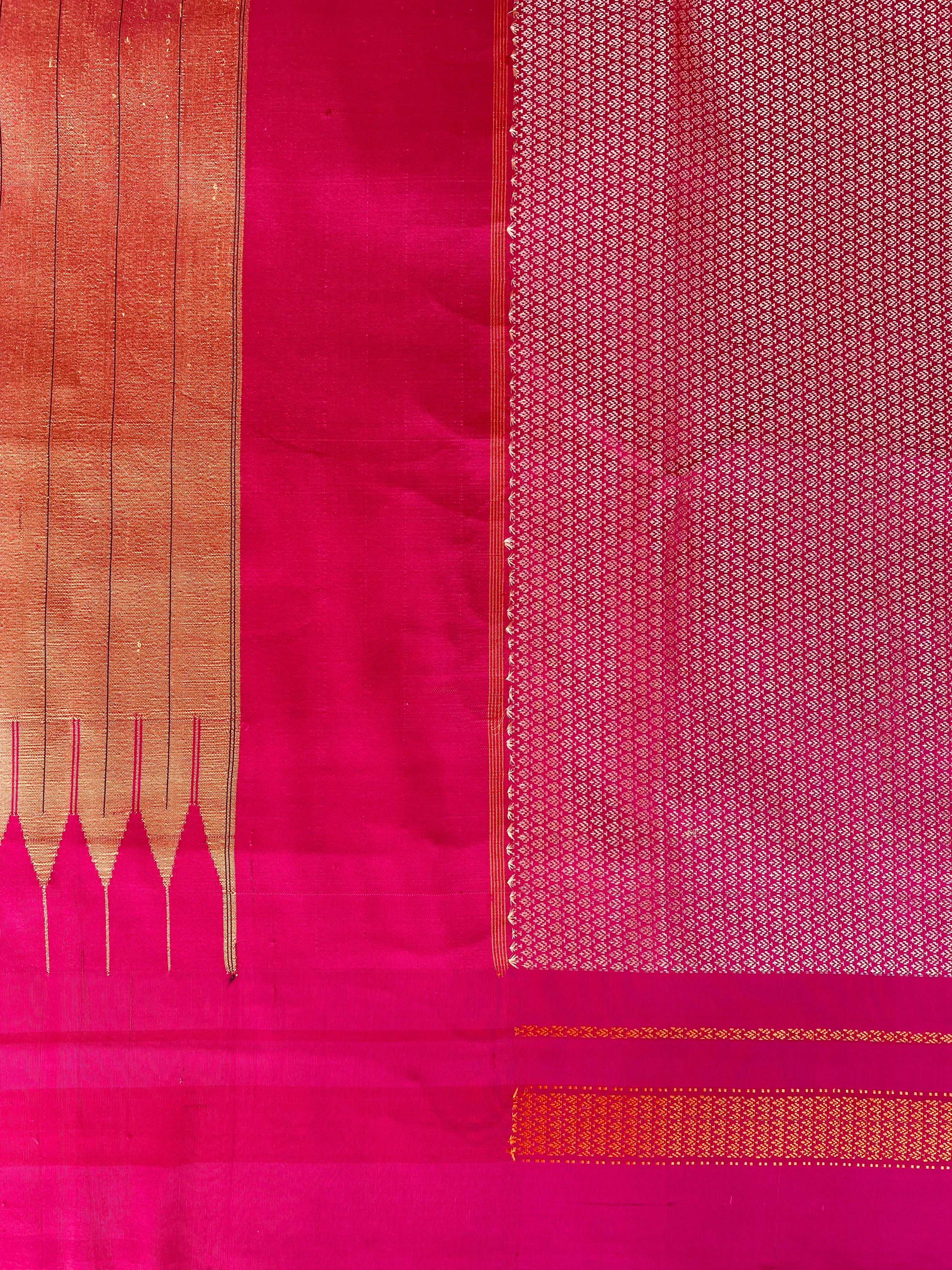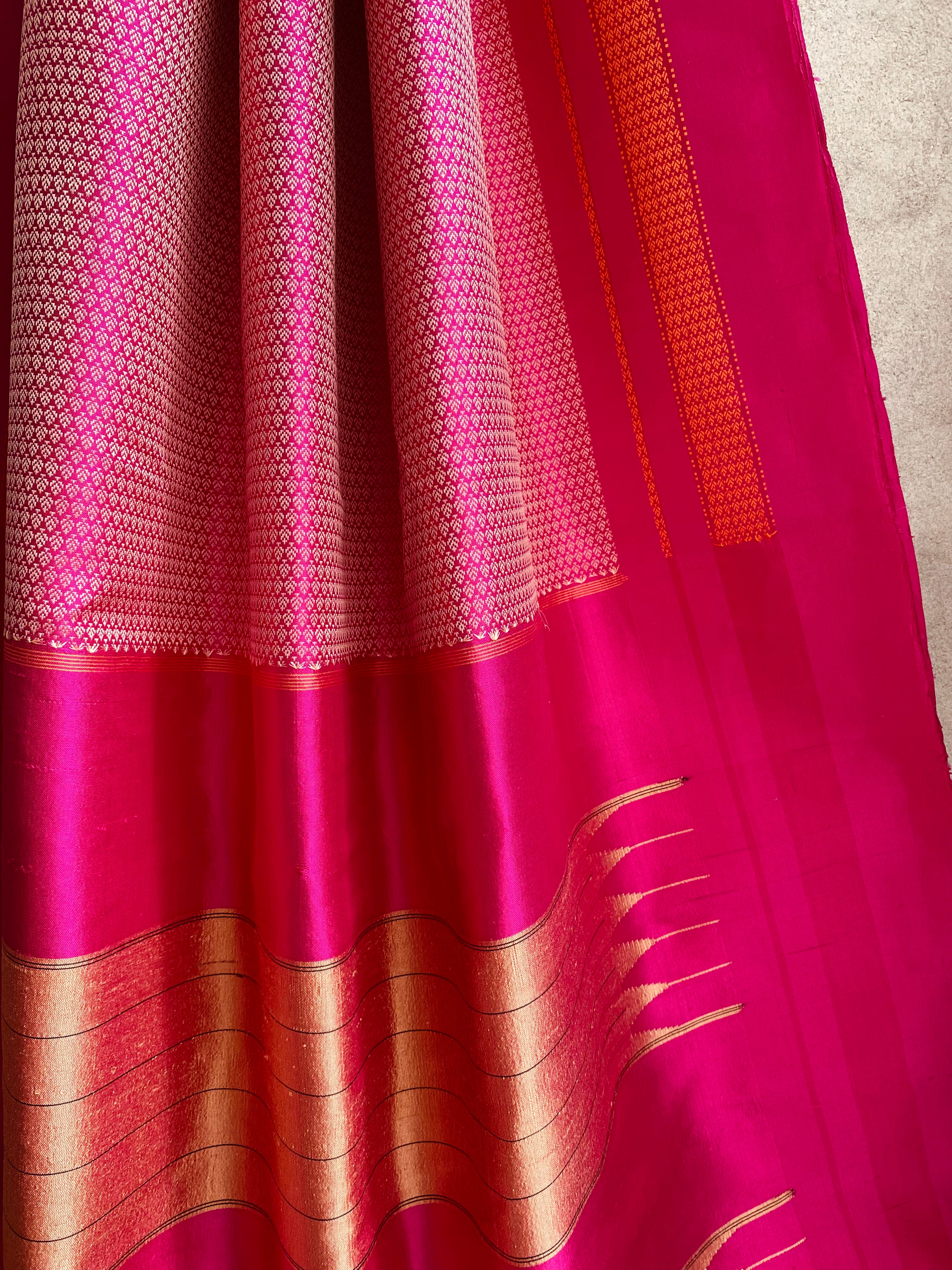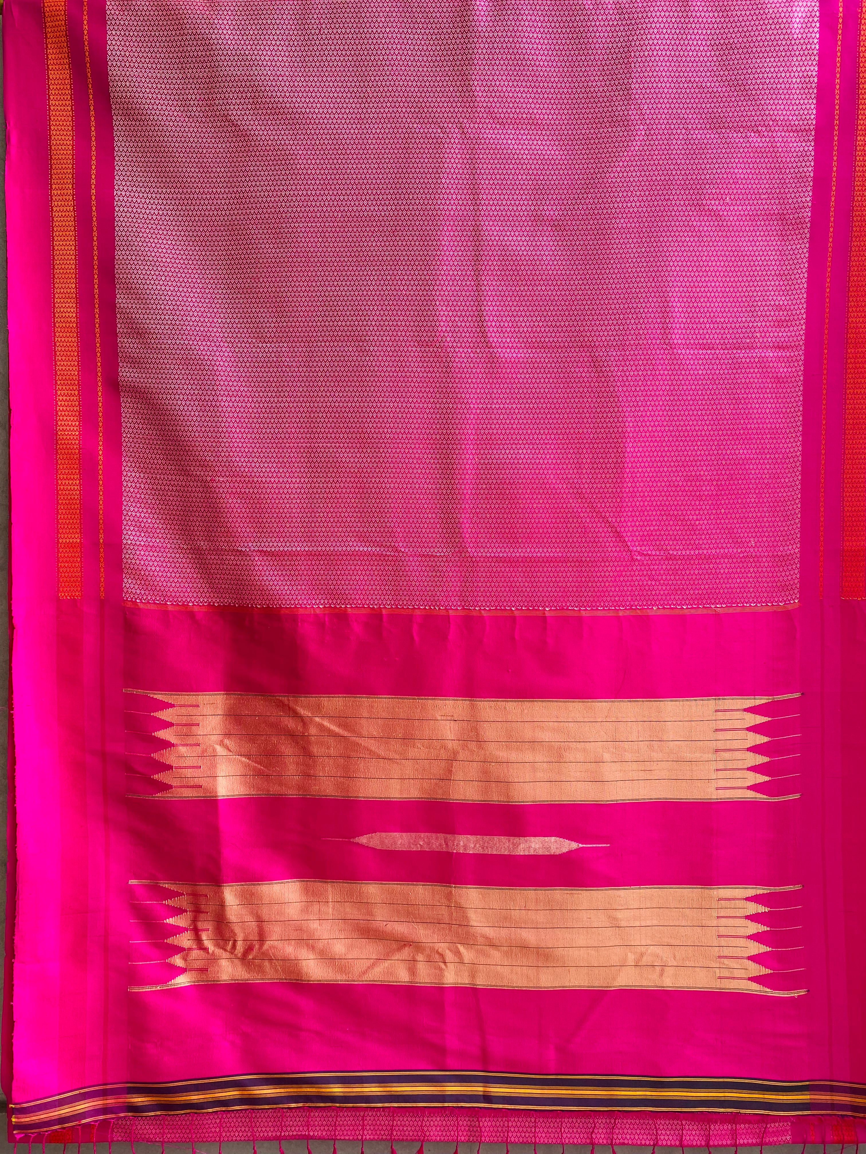 This design has been woven as a unique piece and comes with a coordinated pure mulberry Khunn blouse fabric of 1 meter.