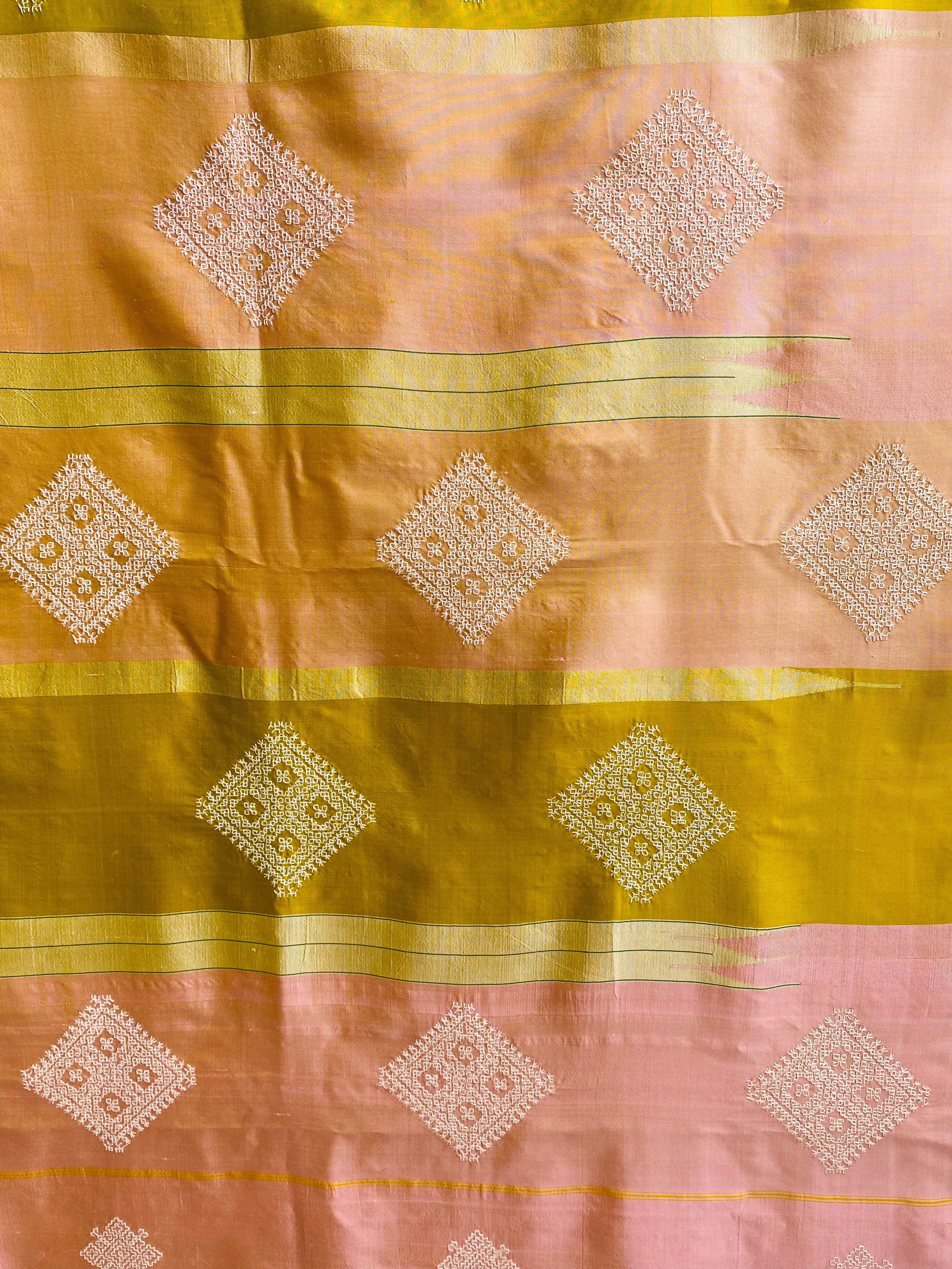 7 - Lightweight Ilkal Reimagined Silk Saree w. Kasuti