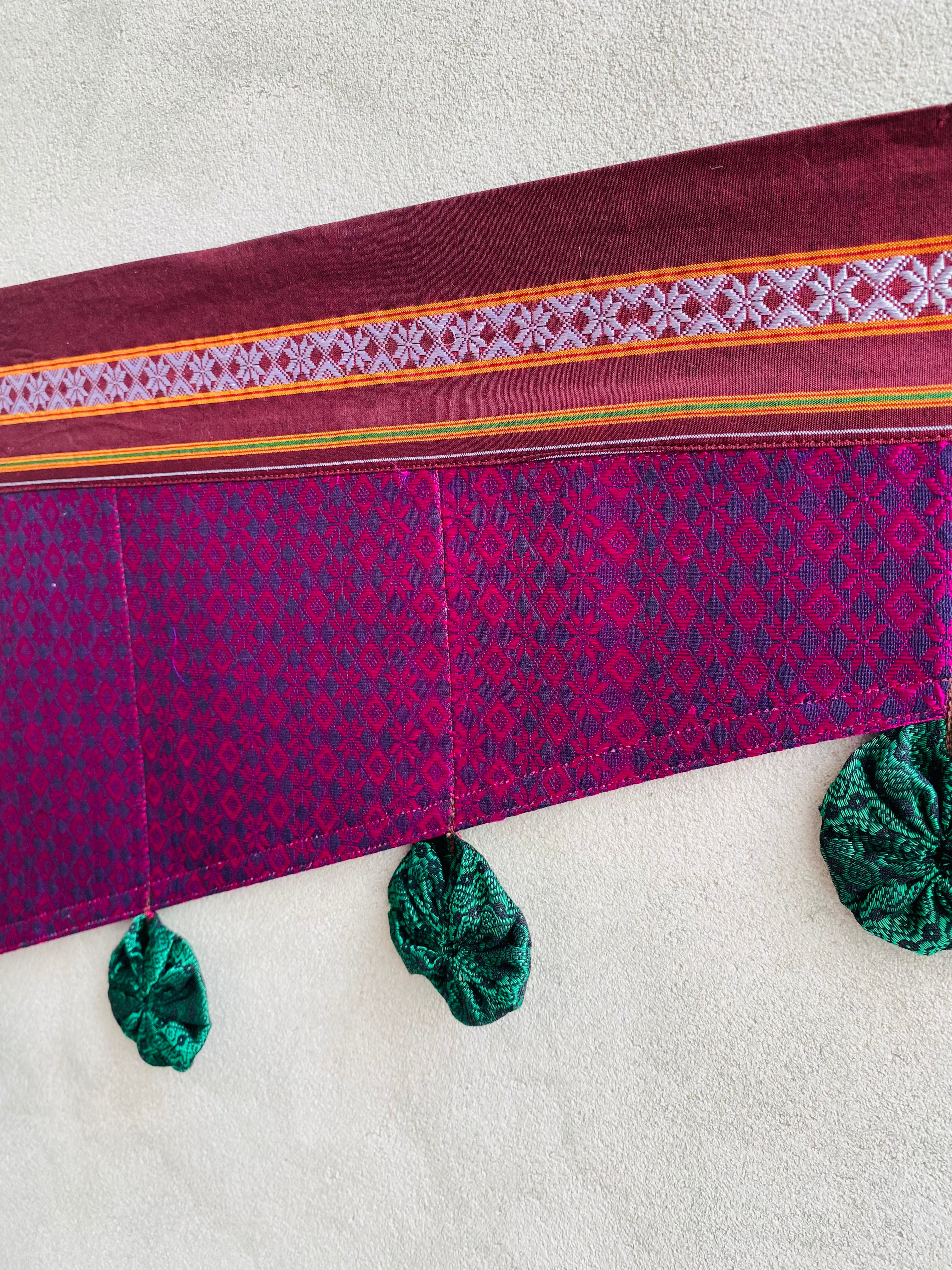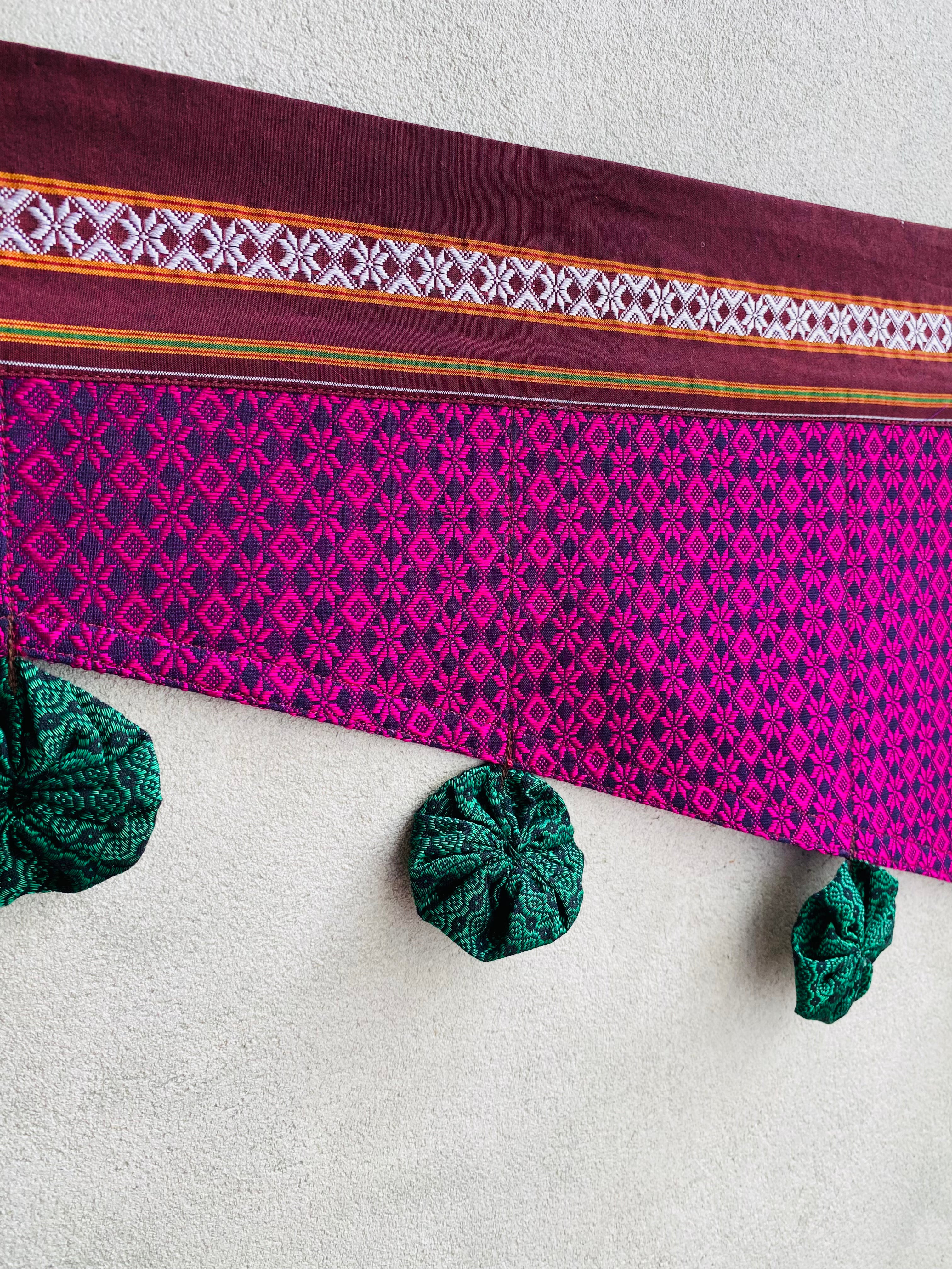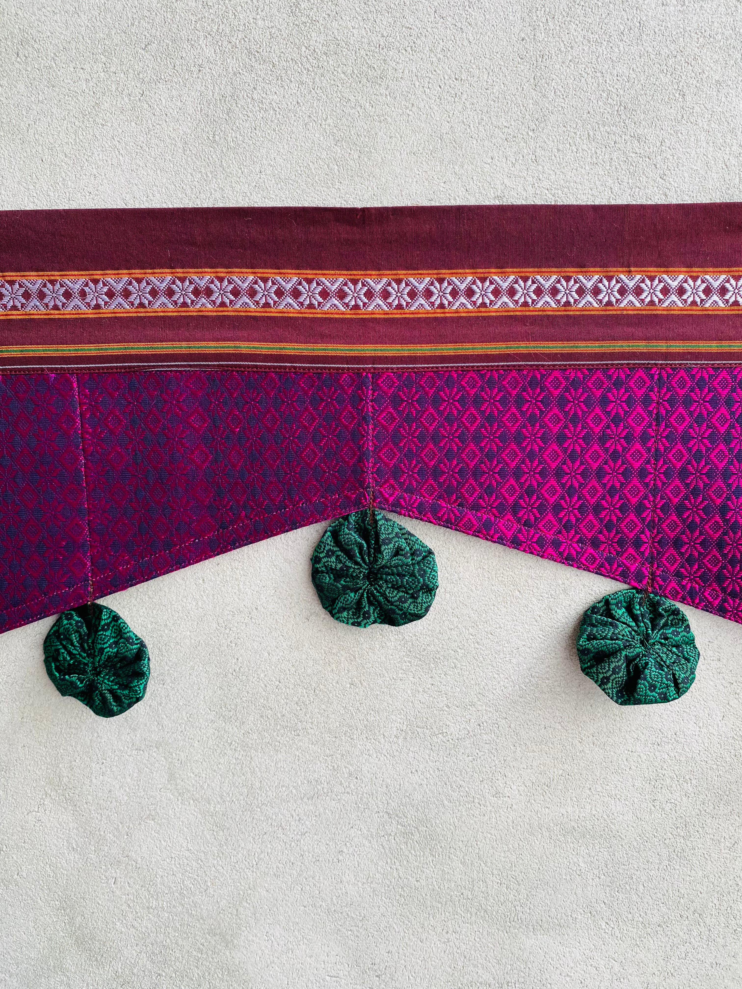 It is these festivals that define who we are. It ties us. It binds us. It grounds us to our ethos, our pastor heritage. The Dwar Toran created out of fabric, by the deft hands of our Kaarigars in a variety of colours is a labour of love. An auspicious adornment for your door. A harbinger of positive energies in to the homes of one and all. Fits any regular door size. Ties at either end.