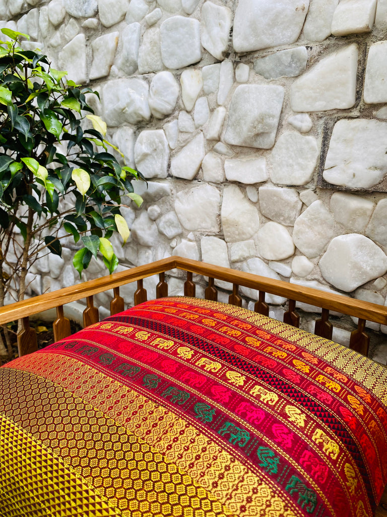 The “Sambhrama” collection — a celebration of Indianness through motifs of the elephant and peacock, symbols of procession, joy, and grandeur. Crafted in deep, rich festive tones, each piece is patched to perfection and reinforced with fine topstitching for impeccable finish.